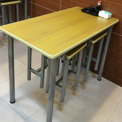 Bàn ghế ăn căng tin cho nhân viên trong trường học và công trường xây dựng – Bàn ghế treo đơn giản.