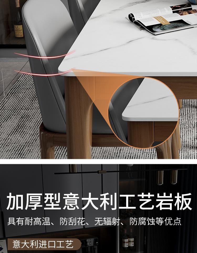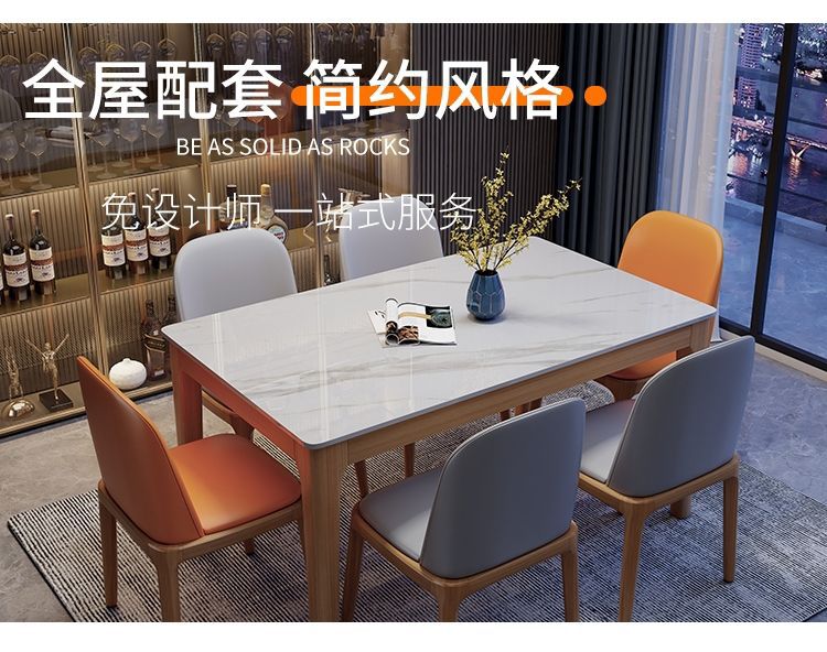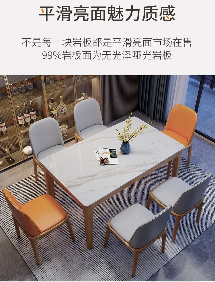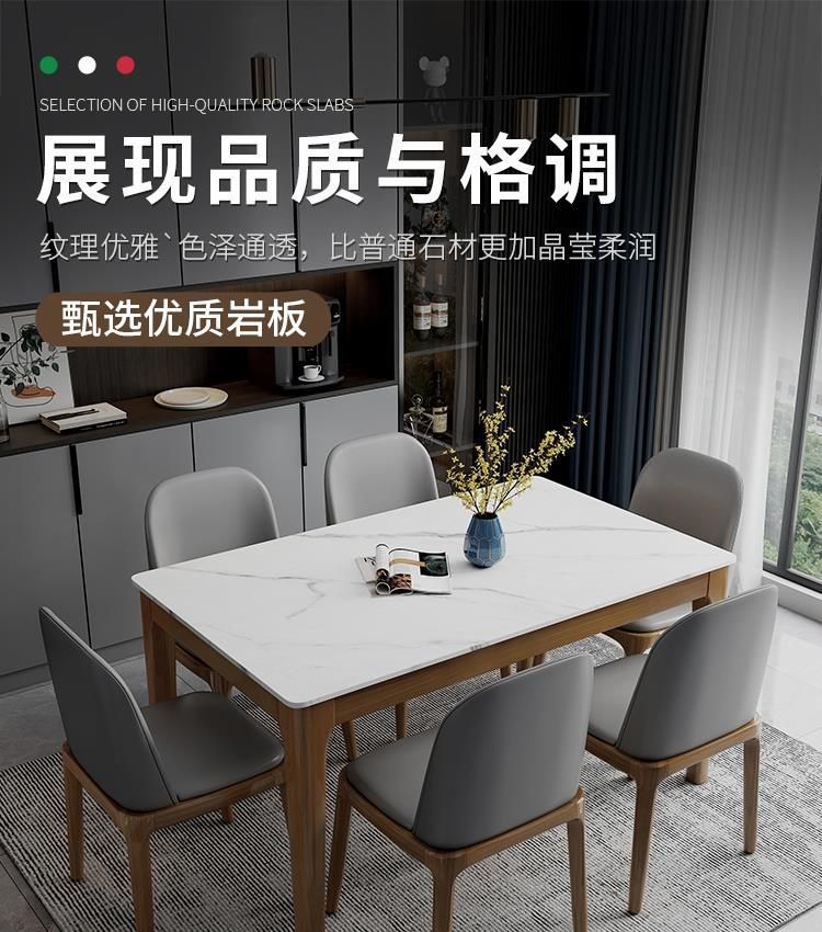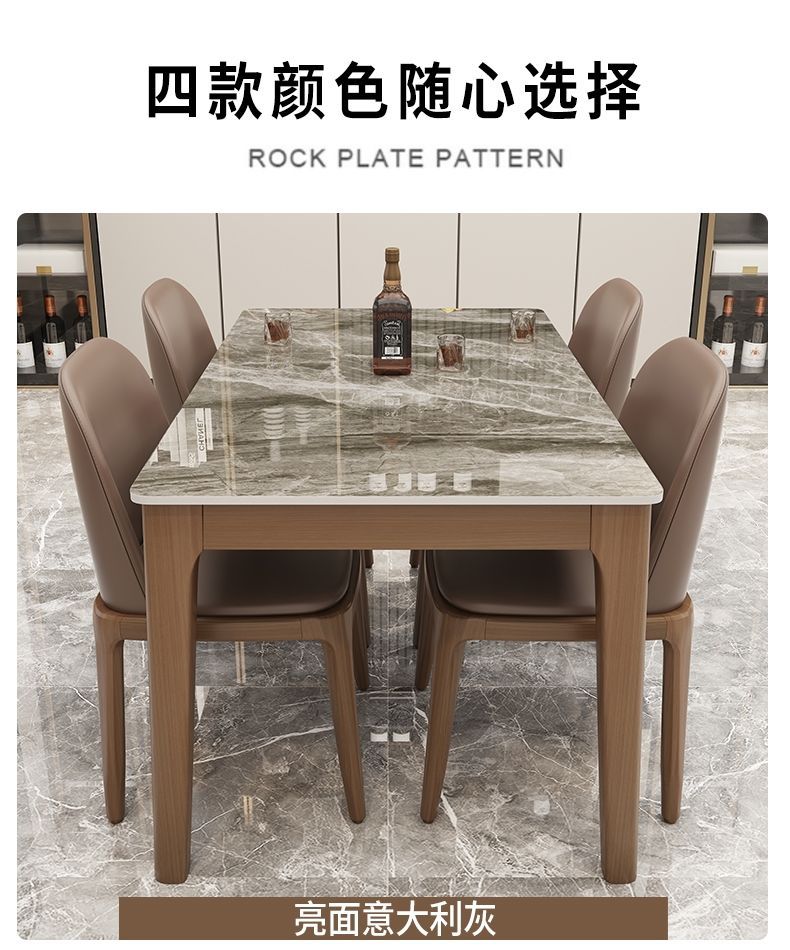 Bàn ghế ăn đá phiến Bắc Âu kết hợp hiện đại đơn giản, màu óc chó, bàn hình chữ nhật, 4 người, 6 người, bàn ăn chung cư nhỏ, bàn ăn.