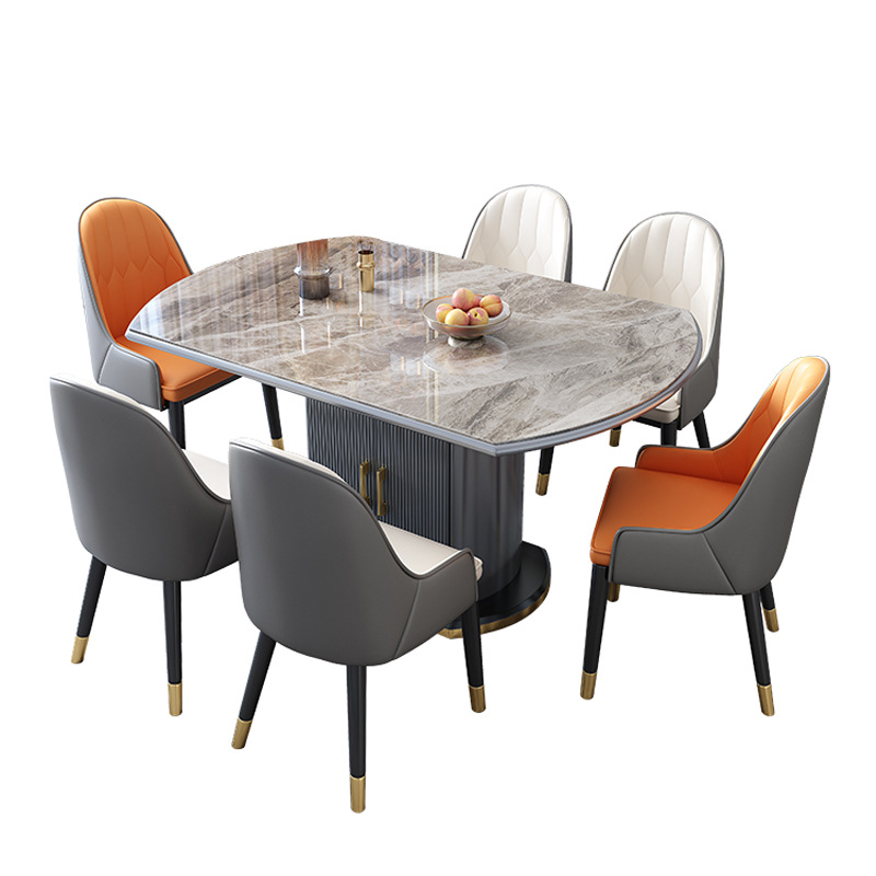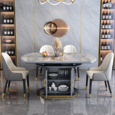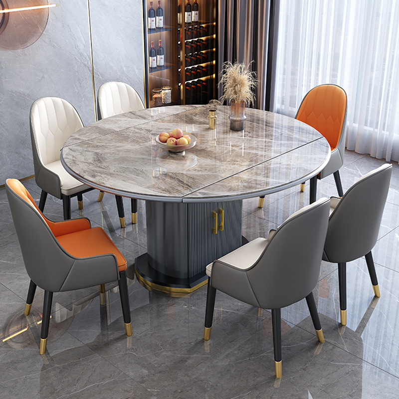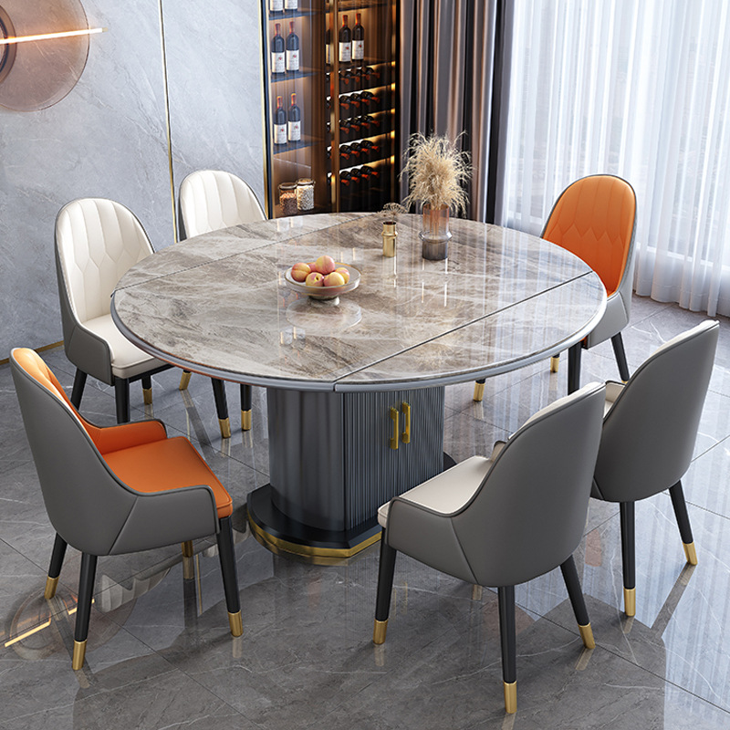 Bàn ghế ăn đá phiến kết hợp hiện đại đơn giản nhẹ nhàng sang trọng nhà căn hộ nhỏ gấp gọn bằng kính thiên văn bàn tròn biến đổi đa chức năng