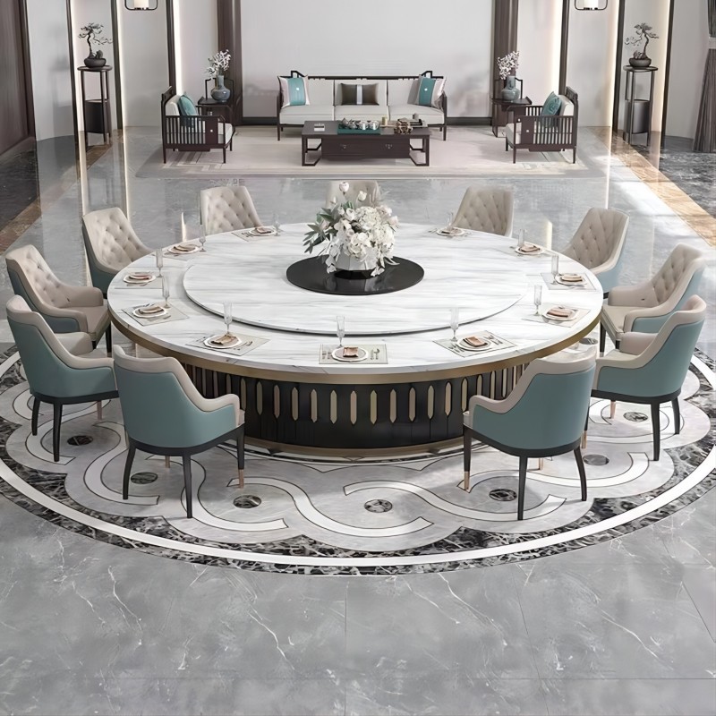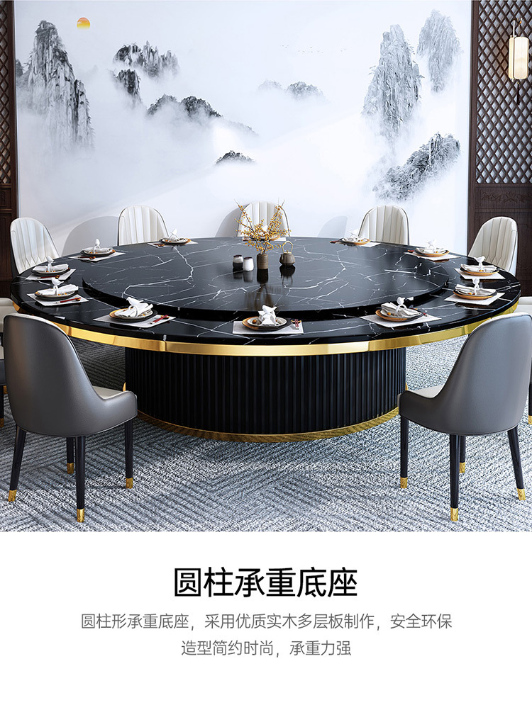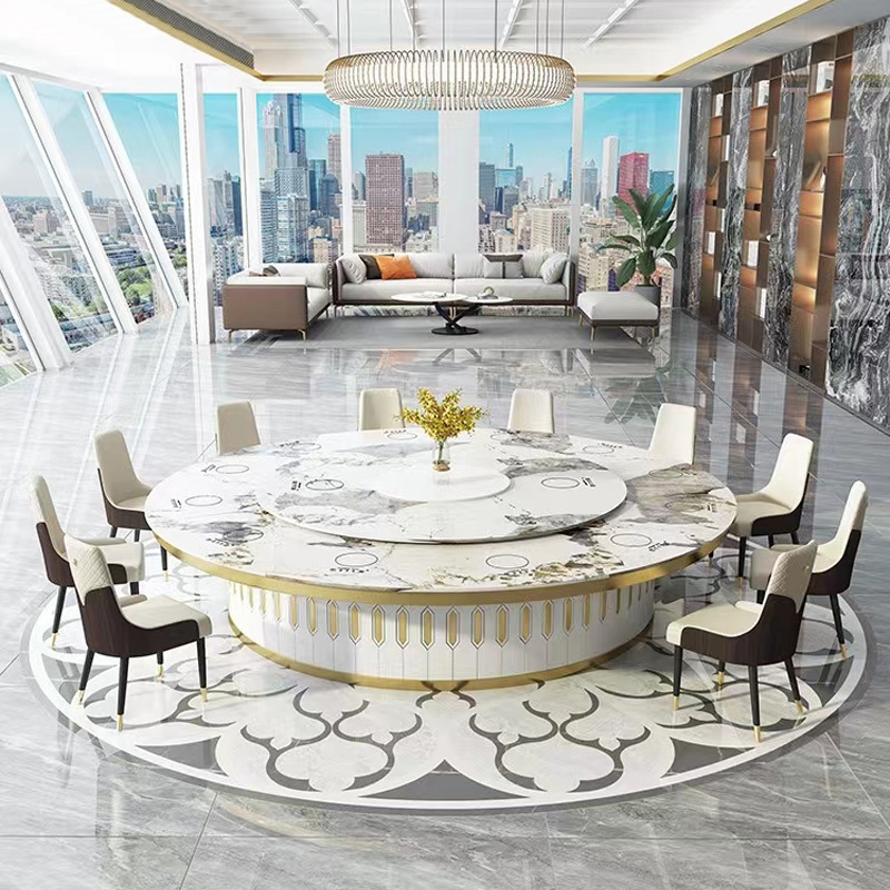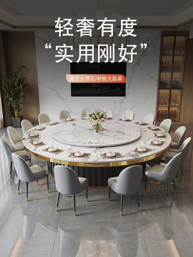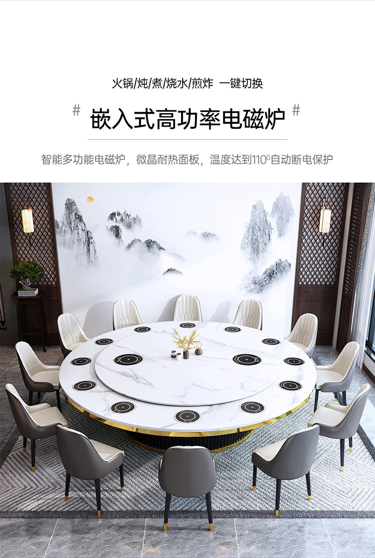 Bàn ghế ăn đá phiến khách sạn biệt thự Bàn tròn lớn có bàn xoay điện Bếp điện từ 20 người Bàn ăn gia đình lẩu