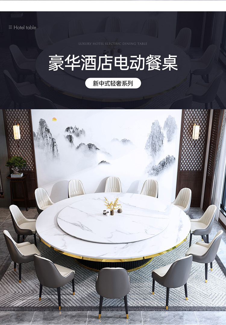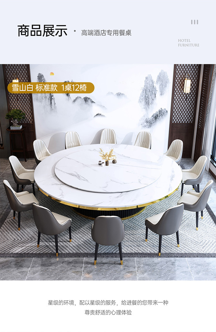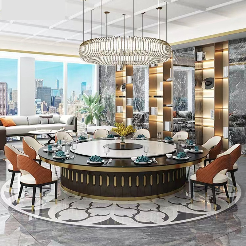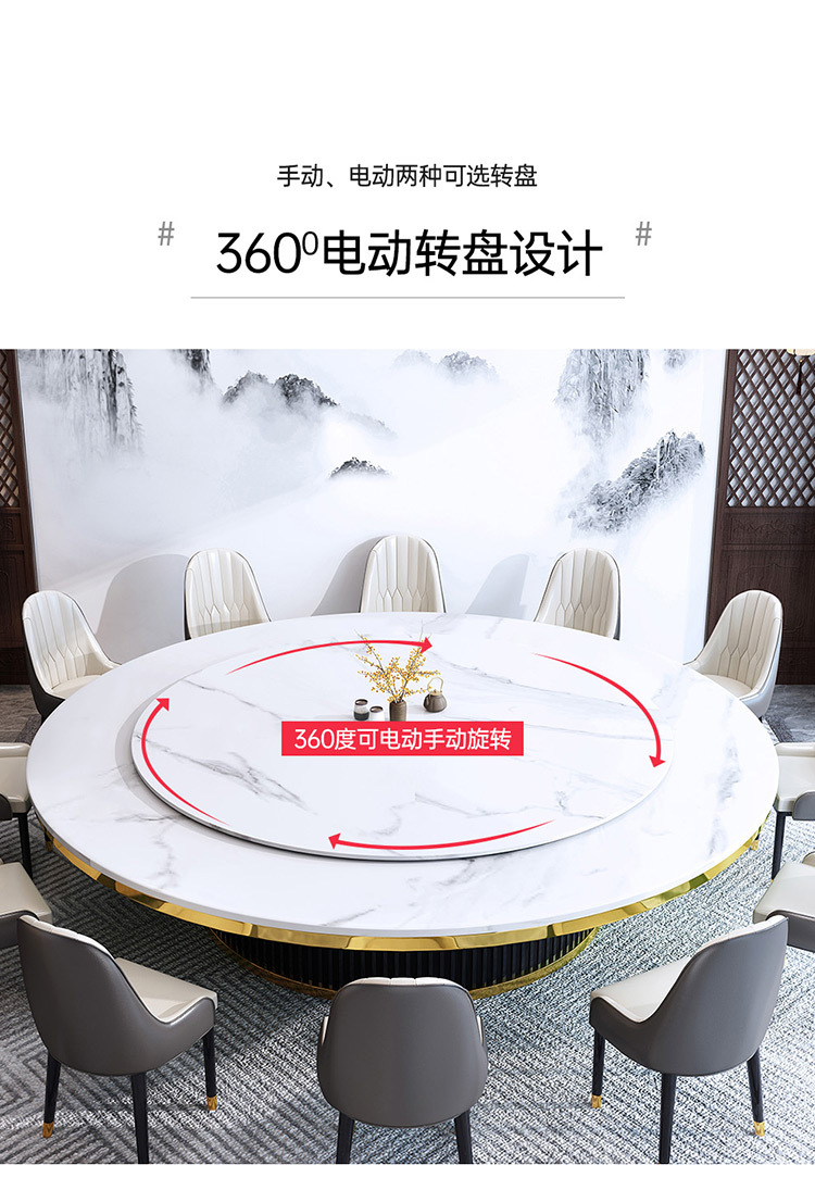Bàn ghế ăn đá phiến khách sạn biệt thự Bàn tròn lớn có bàn xoay điện Bếp điện từ 20 người Bàn ăn gia đình lẩu