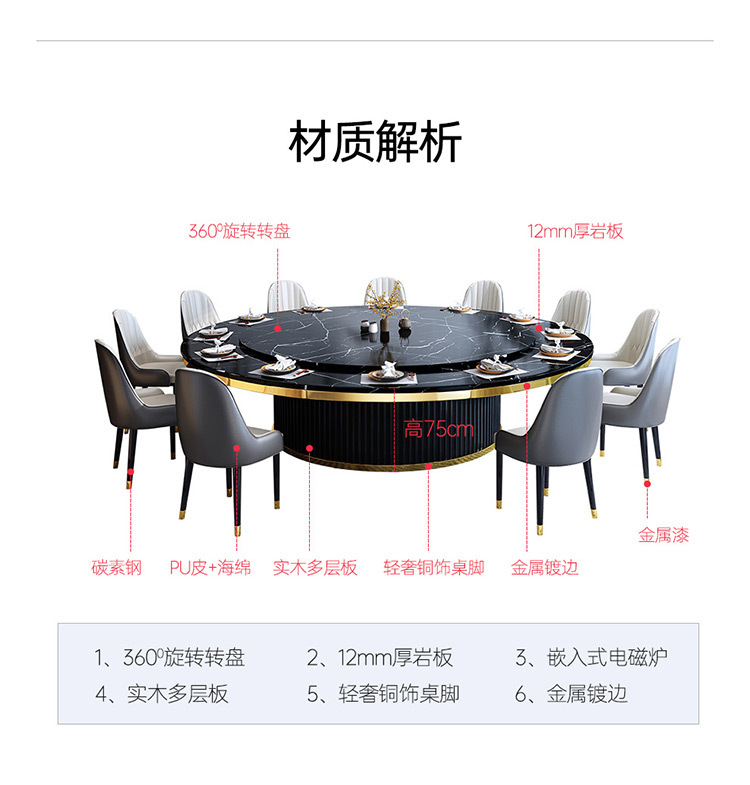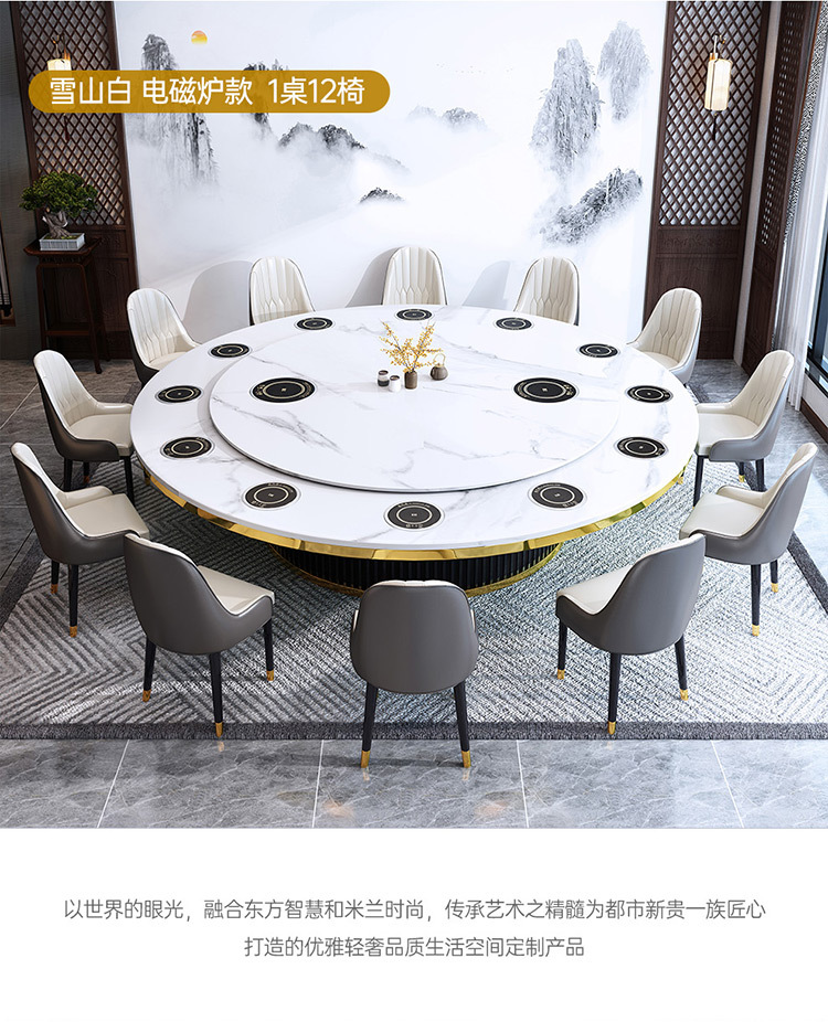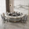 Bàn ghế ăn đá phiến khách sạn biệt thự Bàn tròn lớn có bàn xoay điện Bếp điện từ 20 người Bàn ăn gia đình lẩu – Bàn ăn nhập khẩu cao cấp