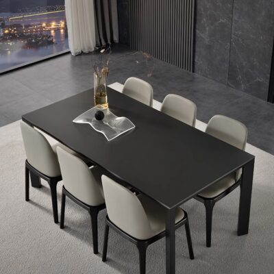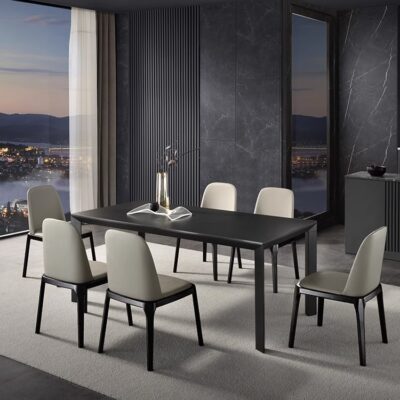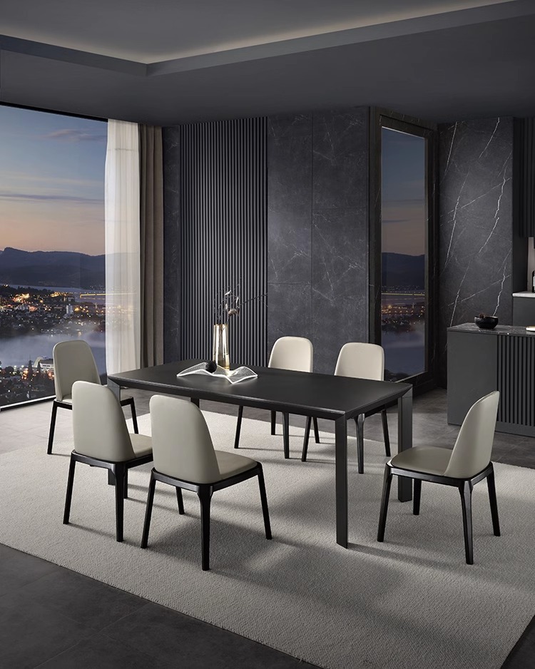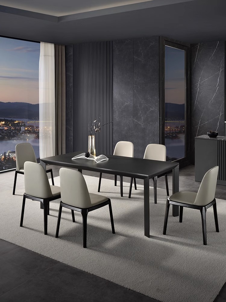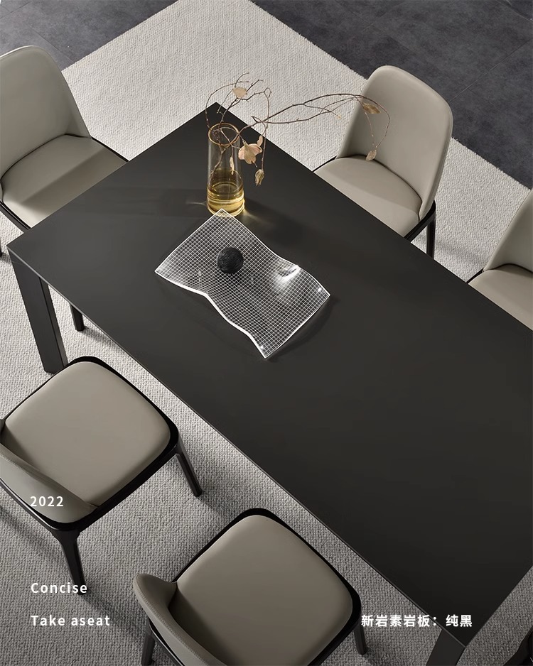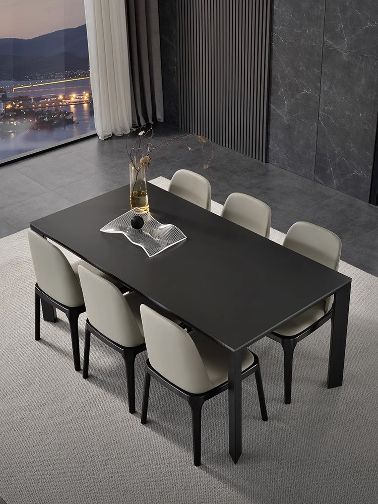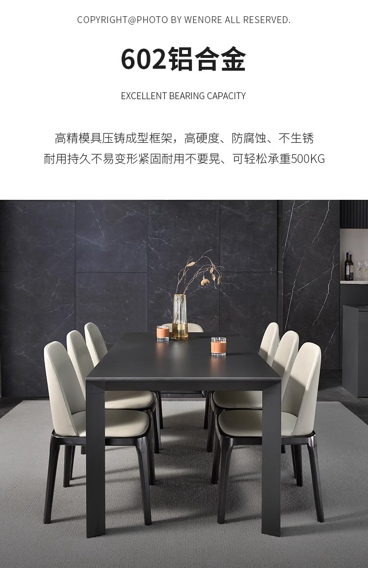 Bàn ghế ăn đá phiến sang trọng nhẹ nhàng của Ý, kết hợp hiện đại, đơn giản, hợp kim nhôm, Bàn ăn Delifeng.