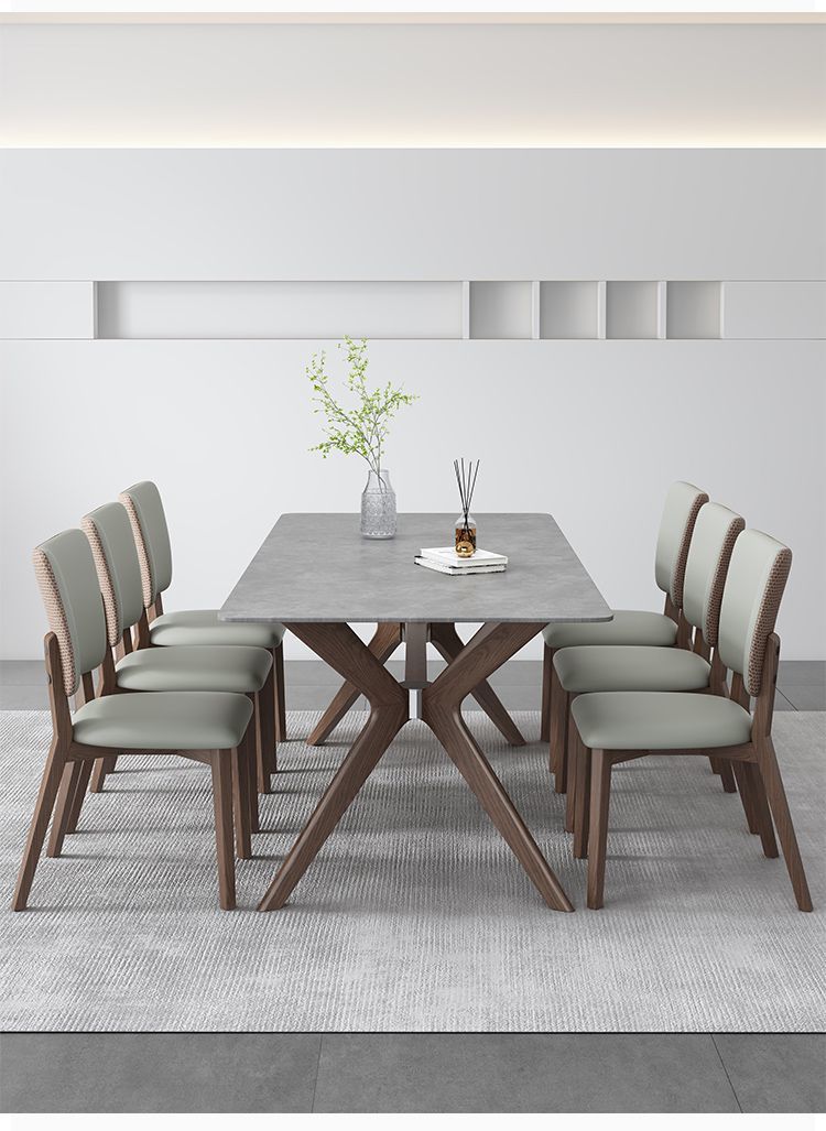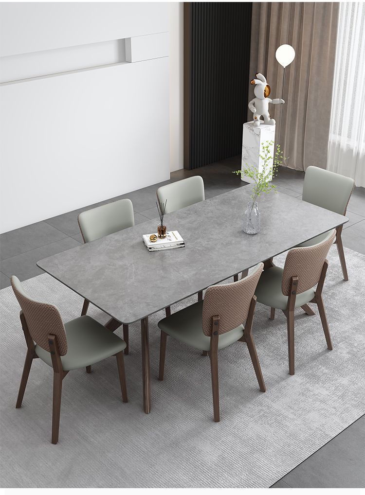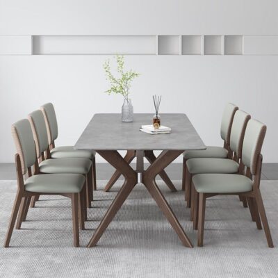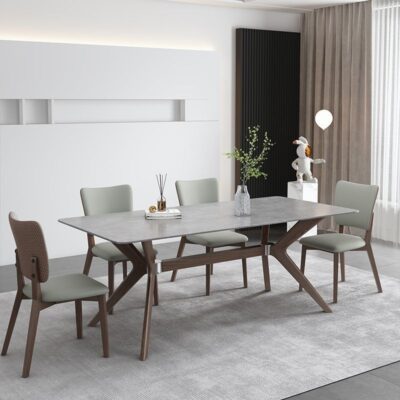 Bàn ghế ăn đá phiến Ý kết hợp với bàn ăn gỗ nguyên khối cho nhà chung cư nhỏ – Phong cách Bắc Âu.