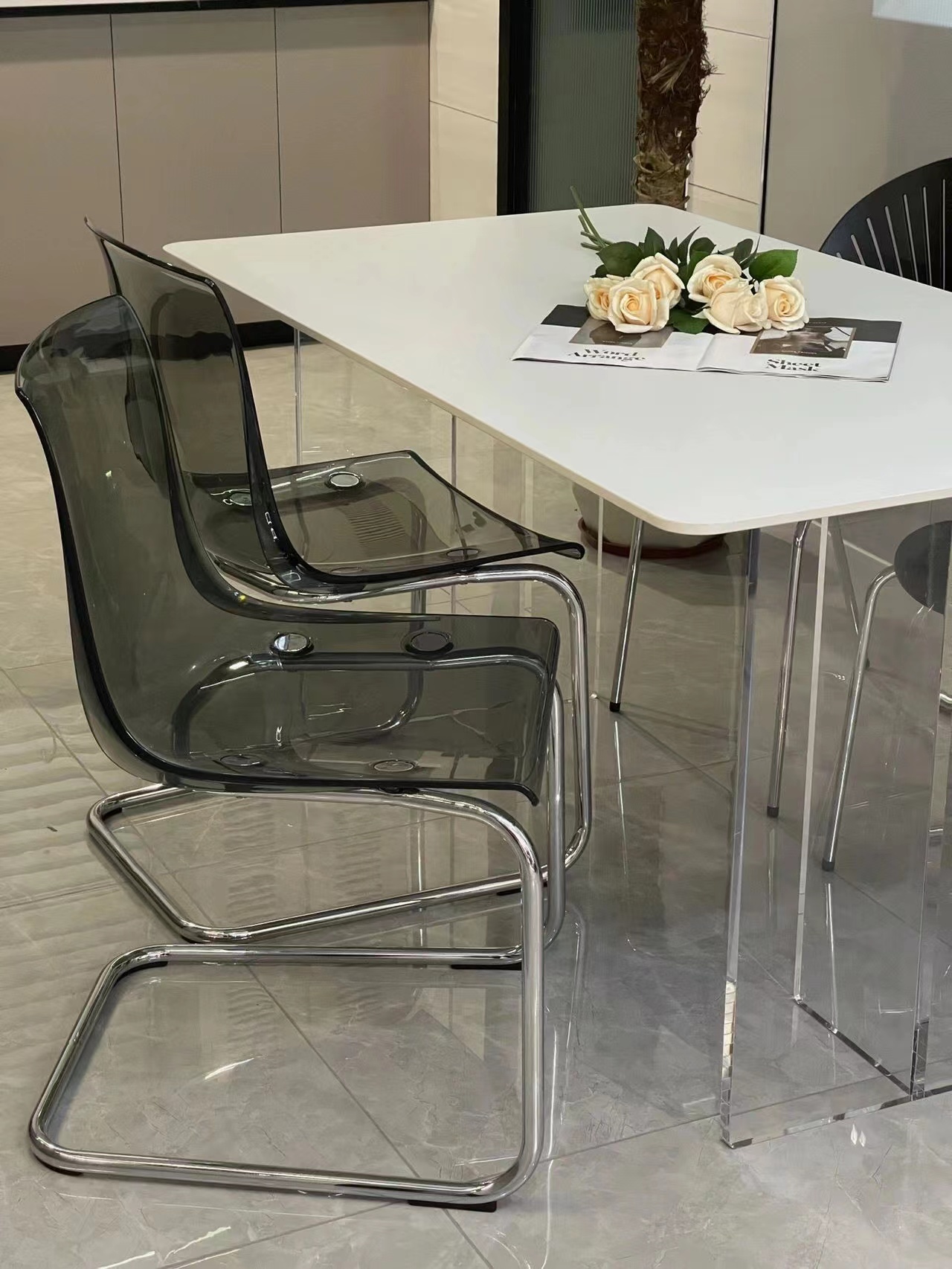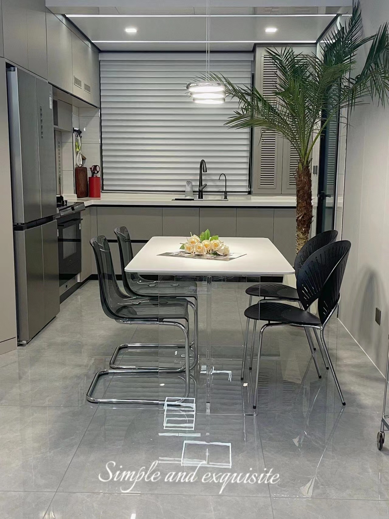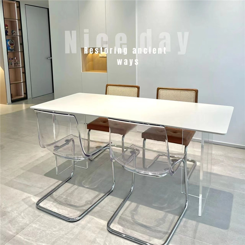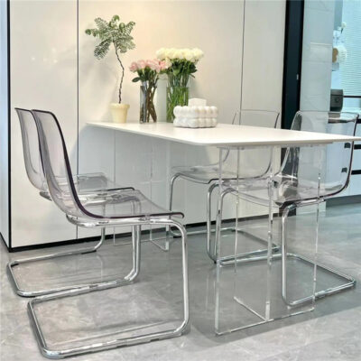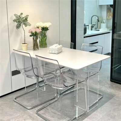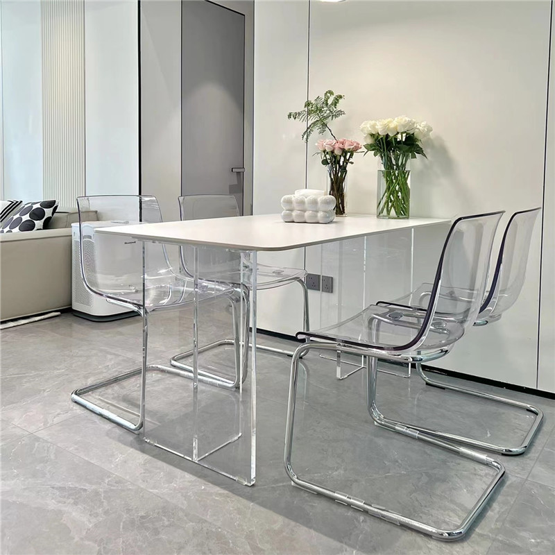 Bàn ghế ăn đá treo acrylic cho phòng nhỏ – Bàn ăn sang trọng và nhẹ nhàng.