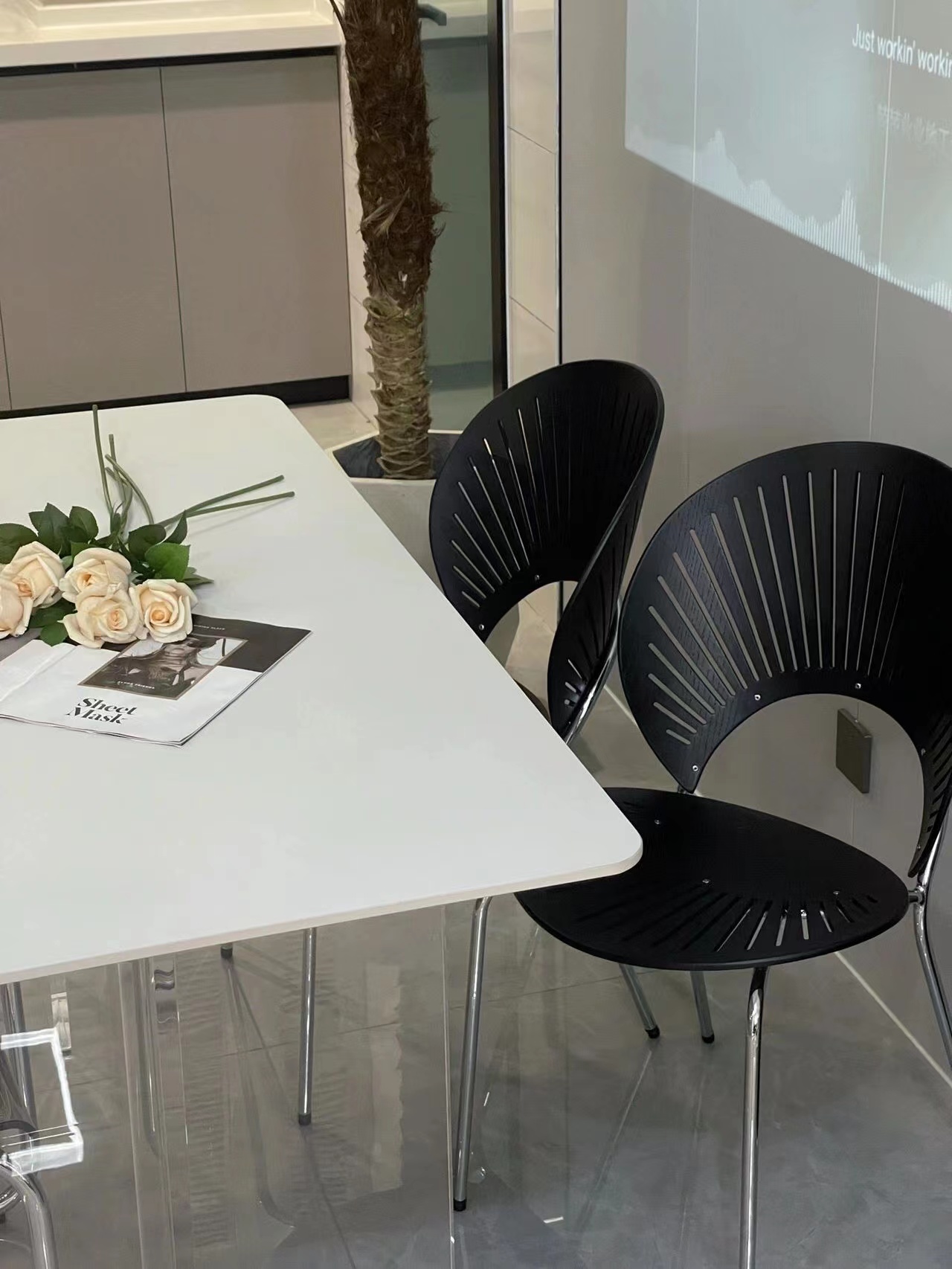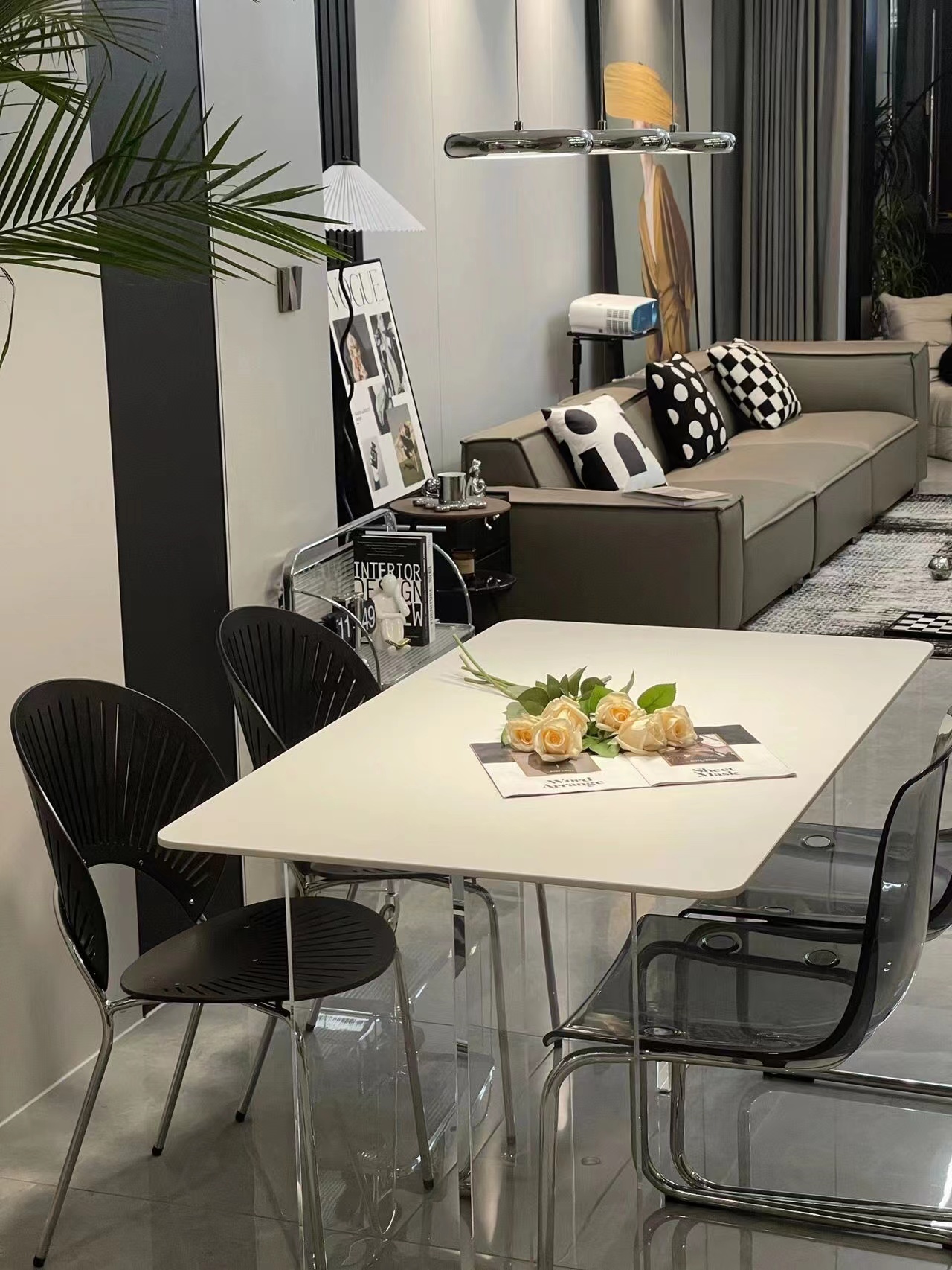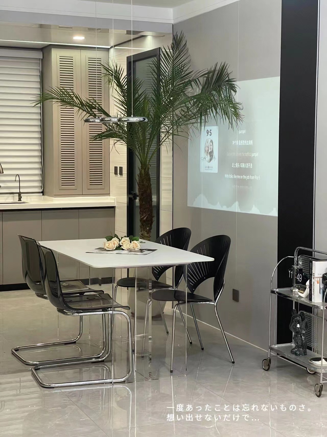 Bàn ghế ăn đá treo acrylic cho phòng nhỏ – Bàn ăn sang trọng và nhẹ nhàng.