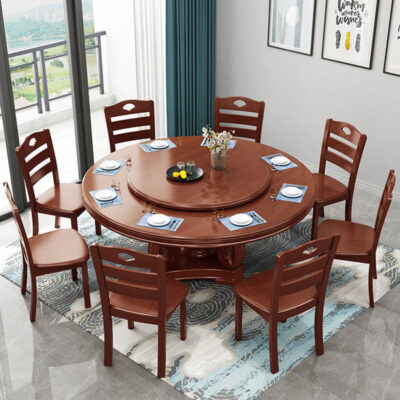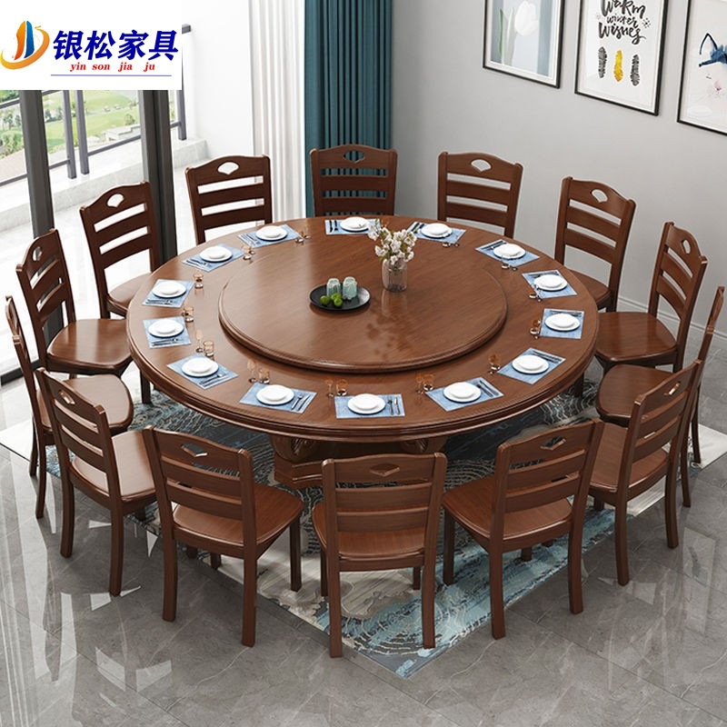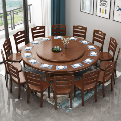 Bàn ghế ăn gỗ cao su kết hợp bàn ăn xoay cho 10 người sử dụng tại nhà Bàn tròn lớn nội thất khách sạn Bàn ăn bán buôn