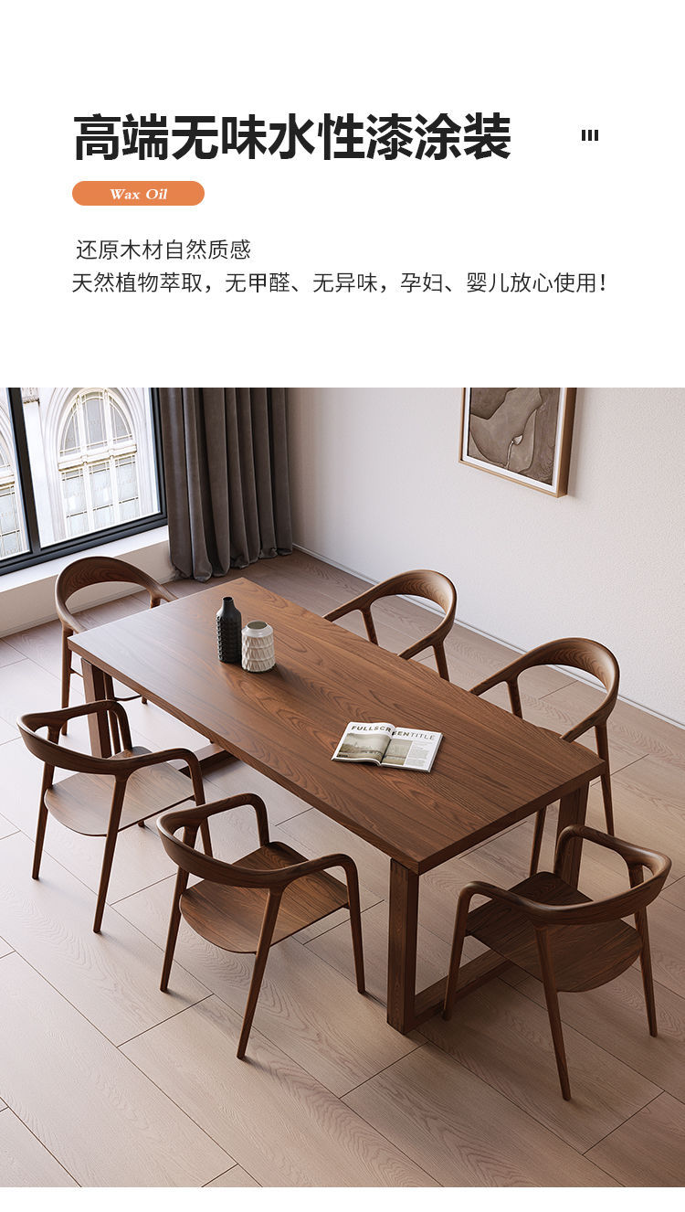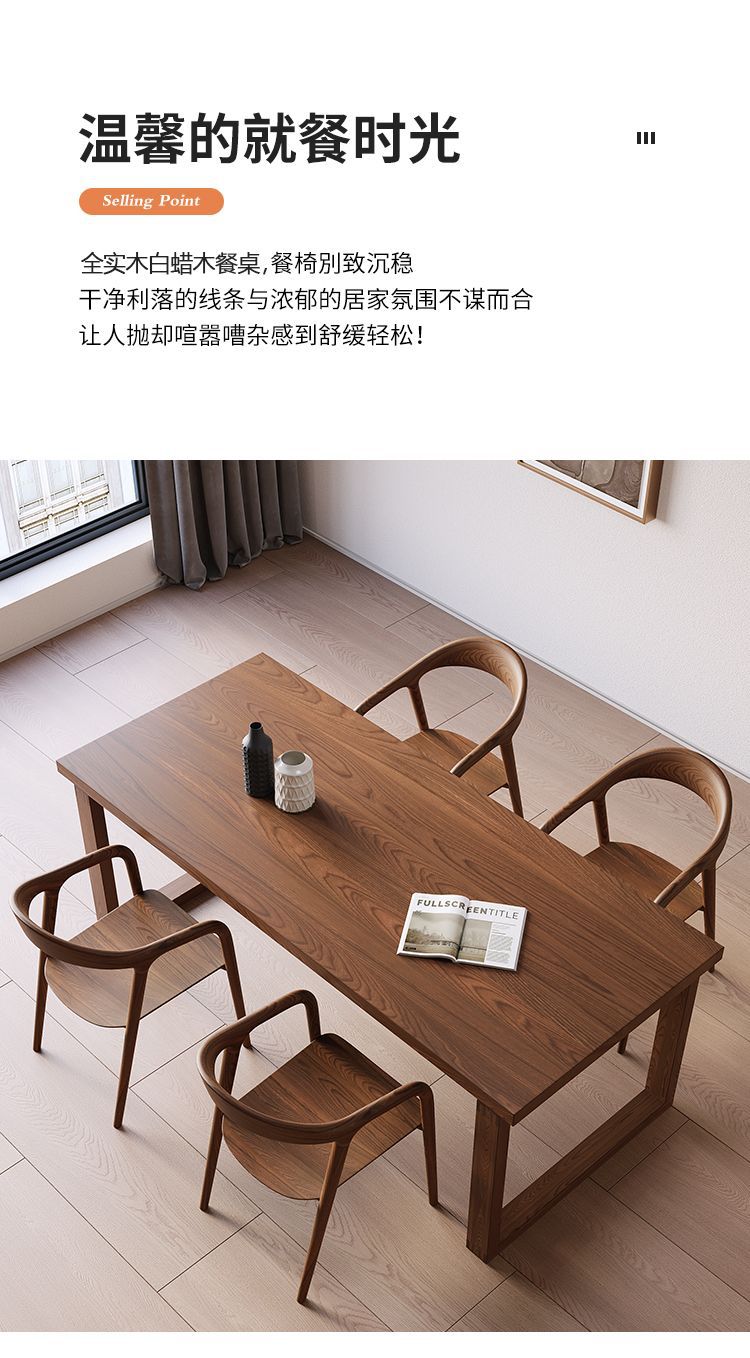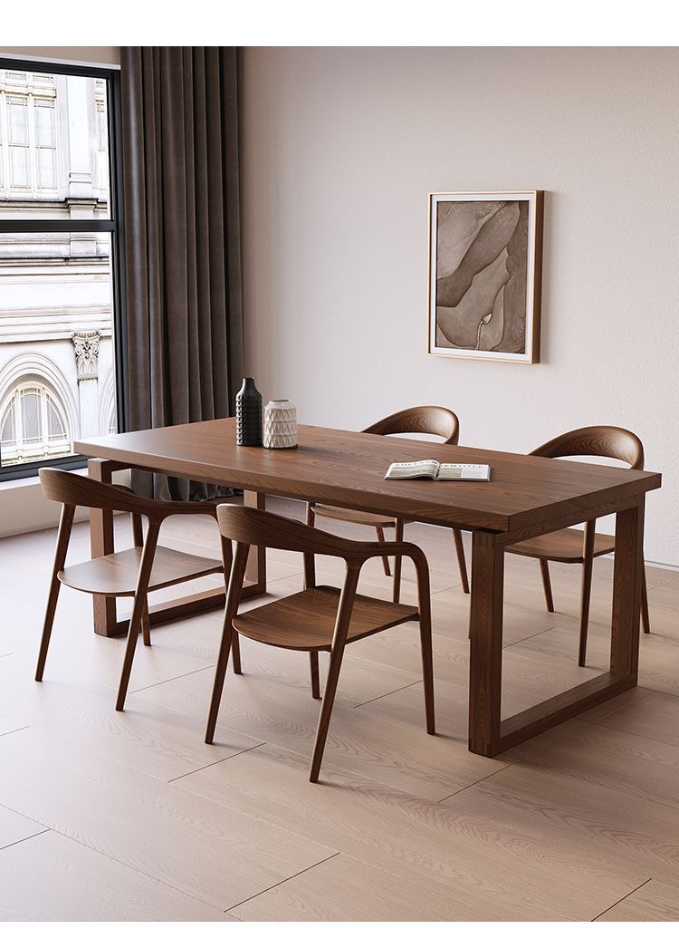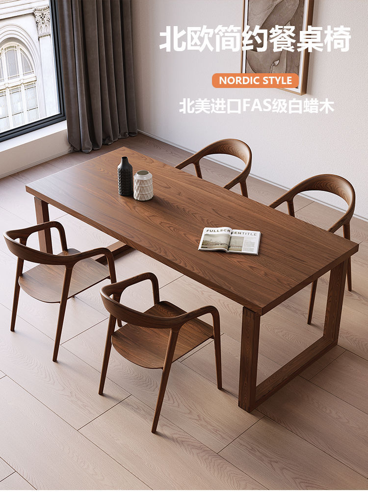 Bàn ghế ăn gỗ nguyên khối Bắc Âu kết hợp hiện đại đơn giản, vừa và nhỏ, bàn ăn kiểu phương Tây tại nhà, nhà hàng, bàn ăn hình chữ nhật.