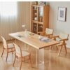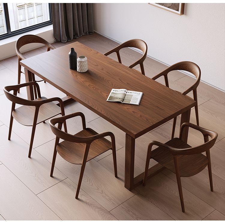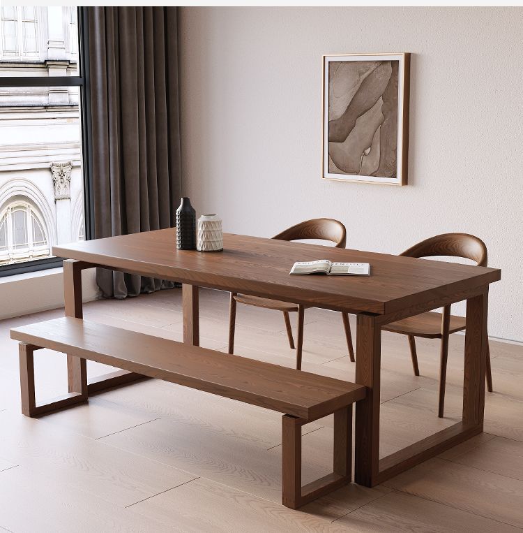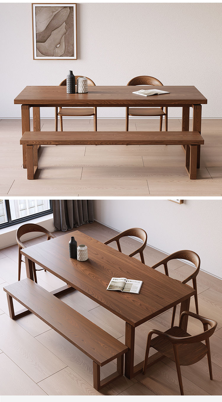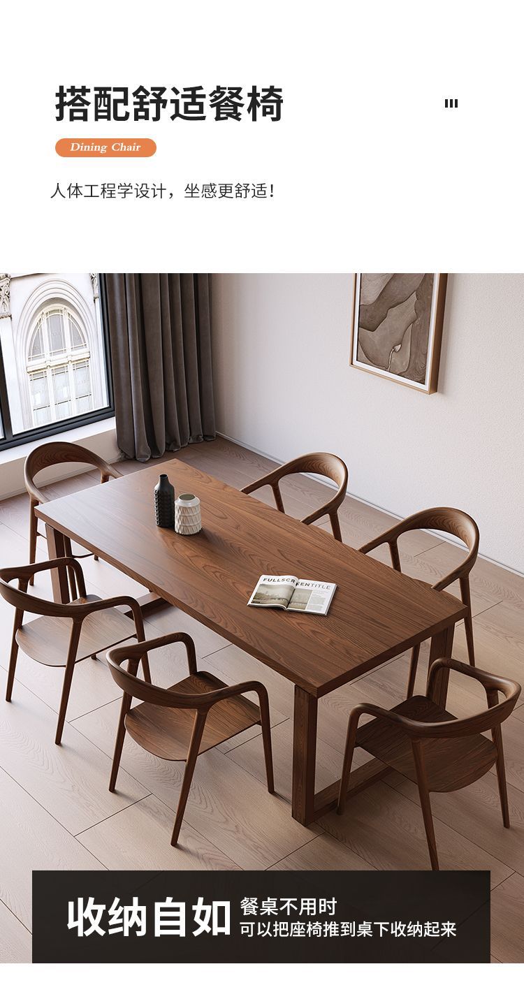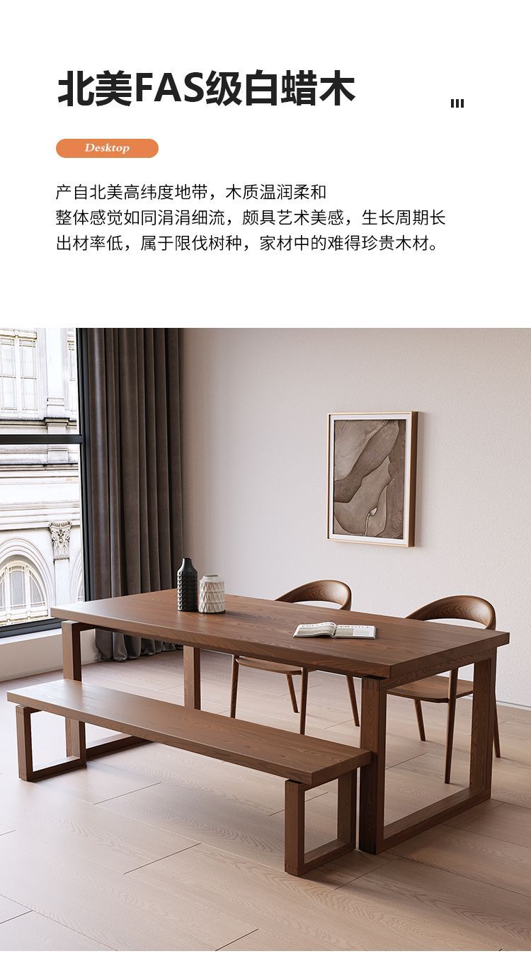 Bàn ghế ăn gỗ nguyên khối Bắc Âu kết hợp hiện đại đơn giản, vừa và nhỏ, bàn ăn kiểu phương Tây tại nhà, nhà hàng, bàn ăn hình chữ nhật.