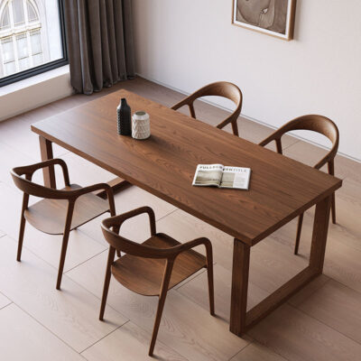 Bàn ghế ăn gỗ nguyên khối Bắc Âu kết hợp hiện đại đơn giản, vừa và nhỏ, bàn ăn kiểu phương Tây tại nhà, nhà hàng, bàn ăn hình chữ nhật.