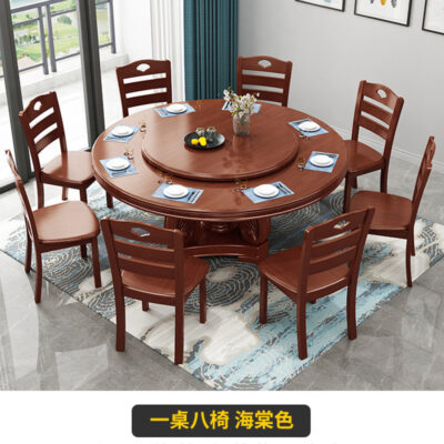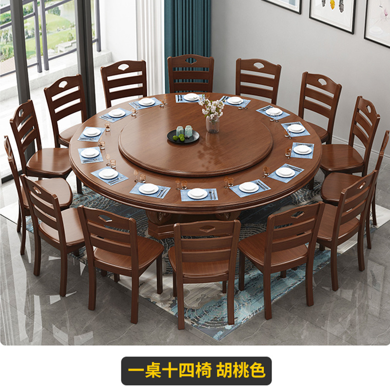 Bàn ghế ăn gỗ nguyên khối kết hợp bàn ăn tròn gia đình với bàn xoay nhà hàng bàn ăn đơn giản 2,2 mét cho nhiều người