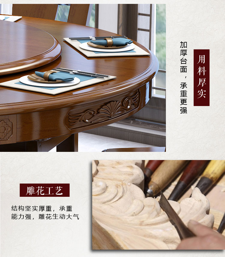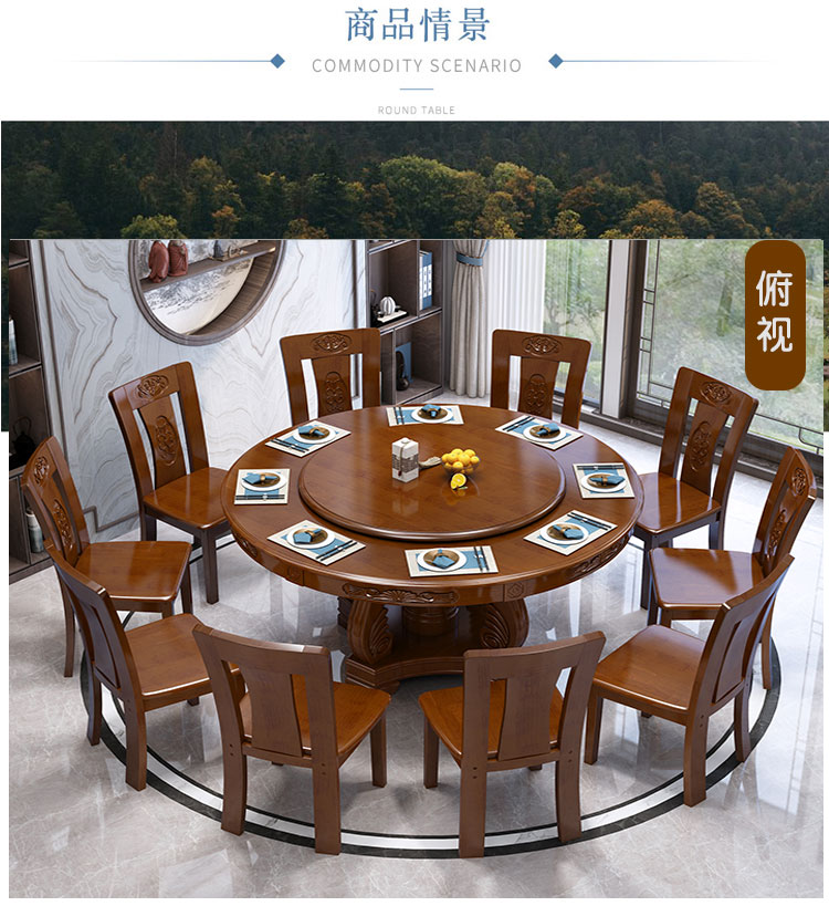 Bàn ghế ăn gỗ nguyên khối kết hợp ghế Bàn ăn tròn kiểu trung quốc cho 10 người bàn xoay bàn tròn gỗ sồi khách sạn 1,8m – Bàn ăn nhập khẩu cao cấp