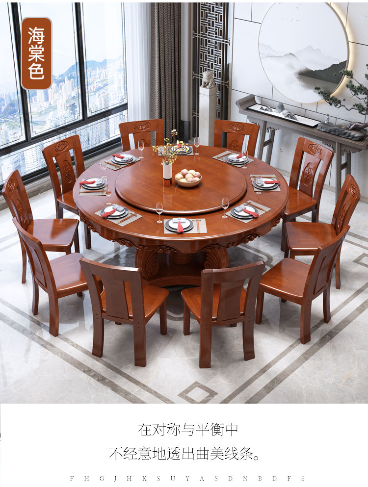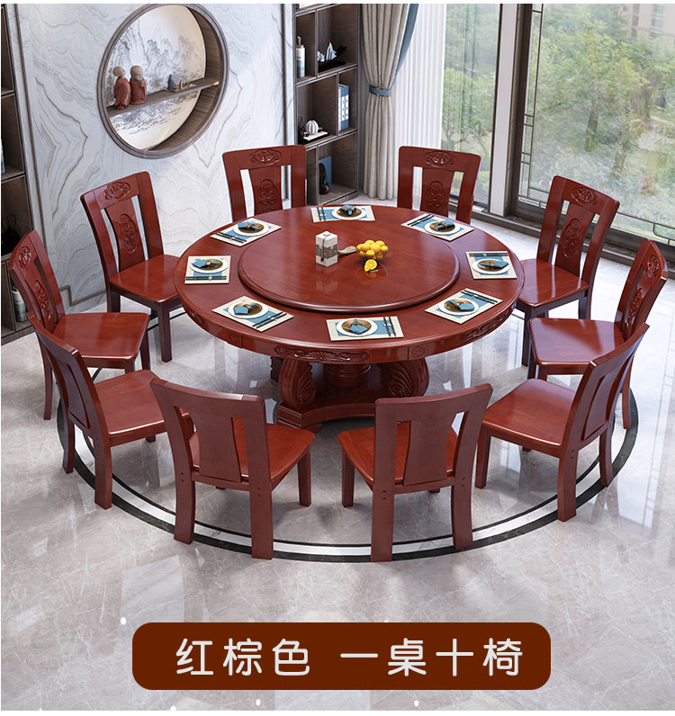 Bàn ghế ăn gỗ nguyên khối kết hợp ghế Bàn ăn tròn kiểu trung quốc cho 10 người bàn xoay bàn tròn gỗ sồi khách sạn 1,8m.