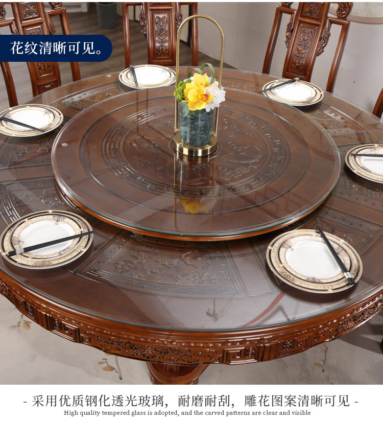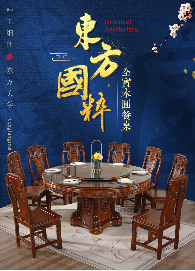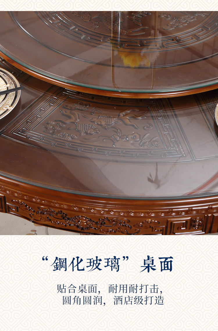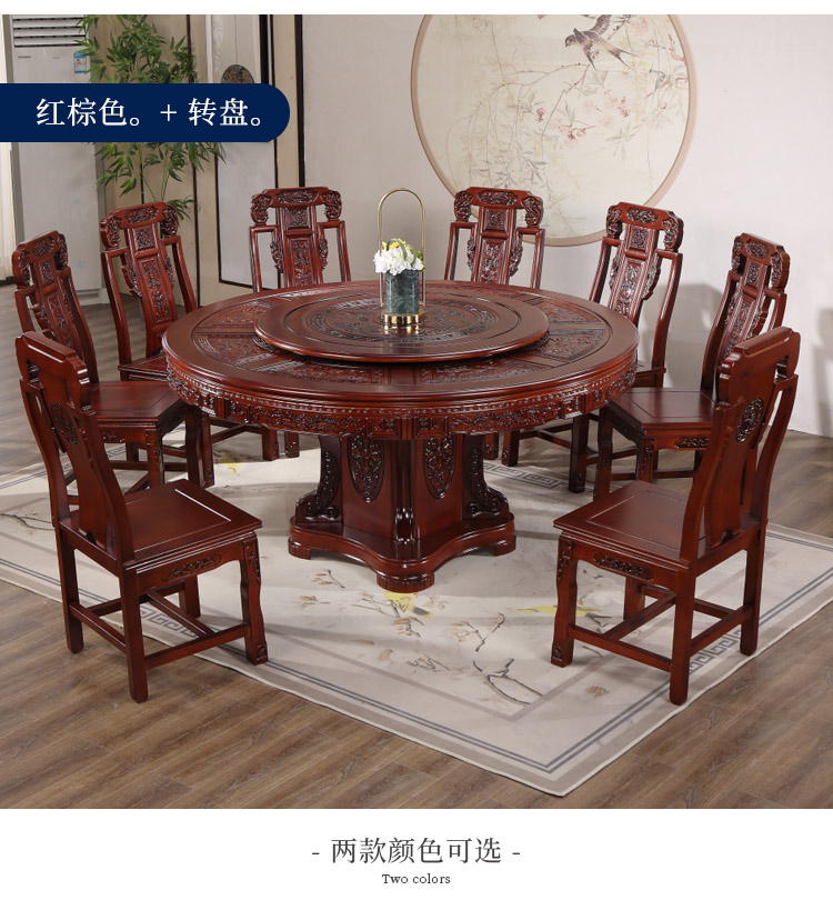 Bàn ghế ăn gỗ nguyên khối kiểu Trung Quốc kết hợp bàn ăn gỗ sồi tròn chạm khắc với bàn xoay 10 người Bàn ăn tròn lớn dùng trong gia đình – Bàn ăn nhập khẩu cao cấp
