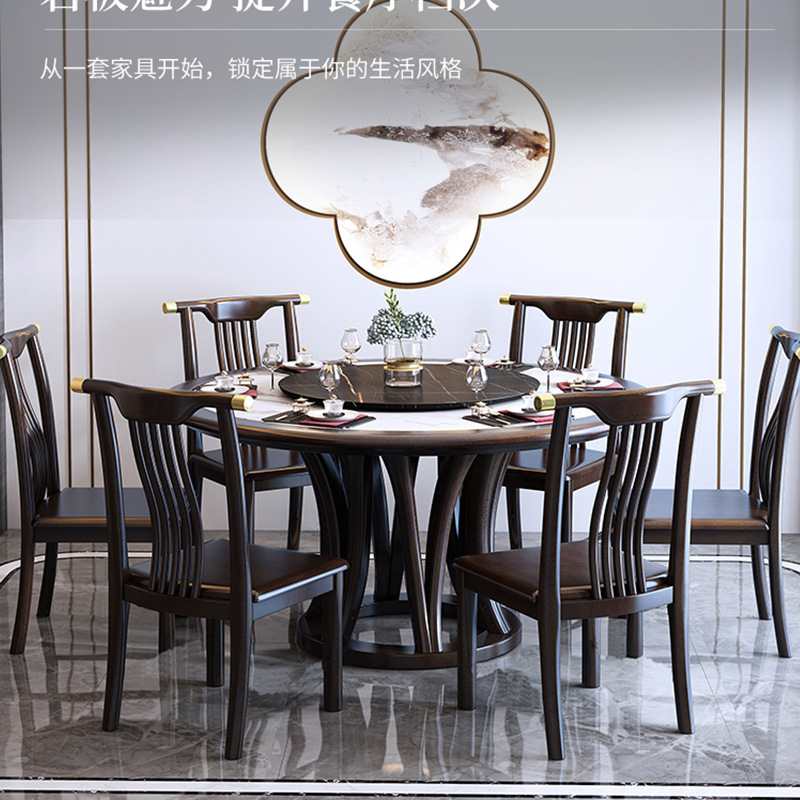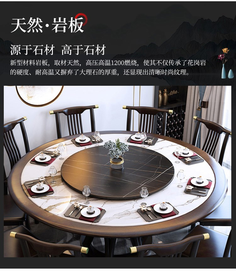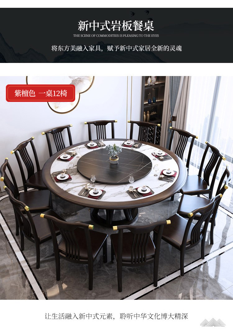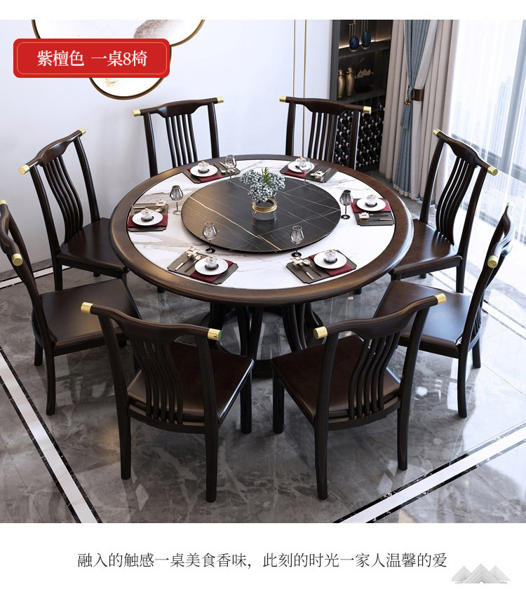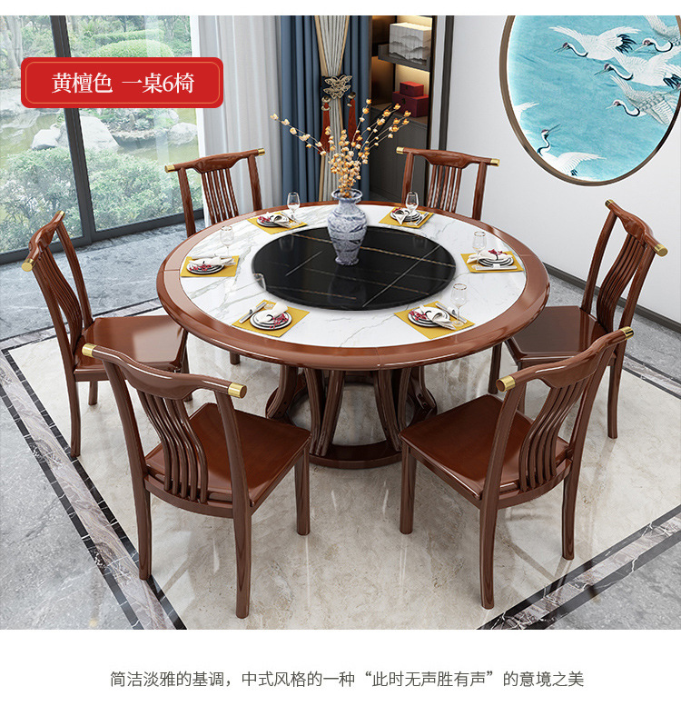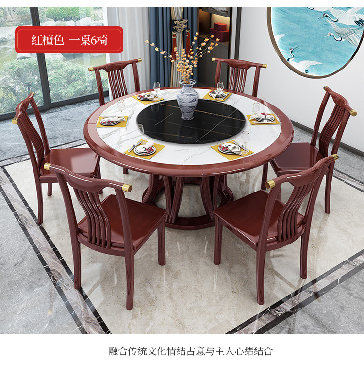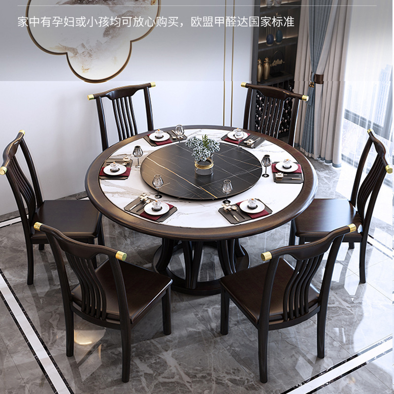 Bàn ghế ăn gỗ nguyên khối kiểu Trung Quốc mới kết hợp đá phiến hiện đại đơn giản bàn ăn tròn nhà hàng bàn tròn lớn