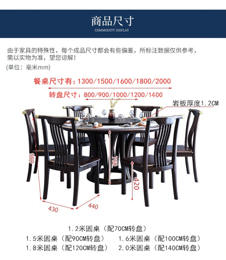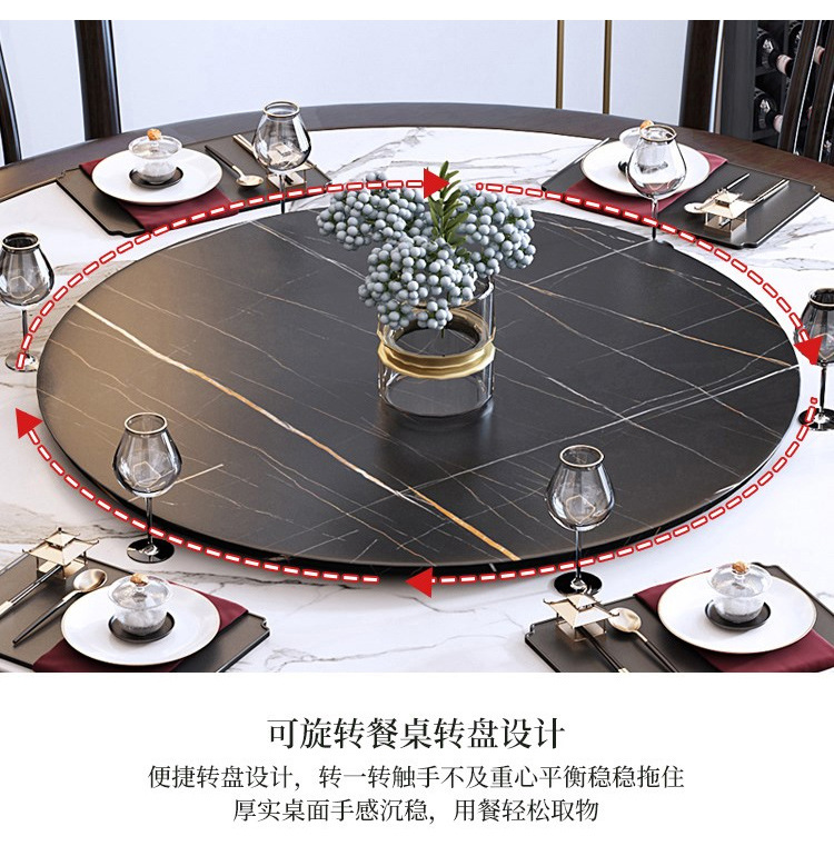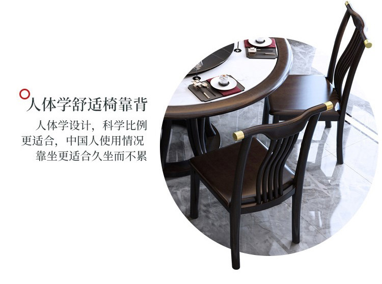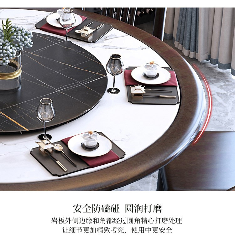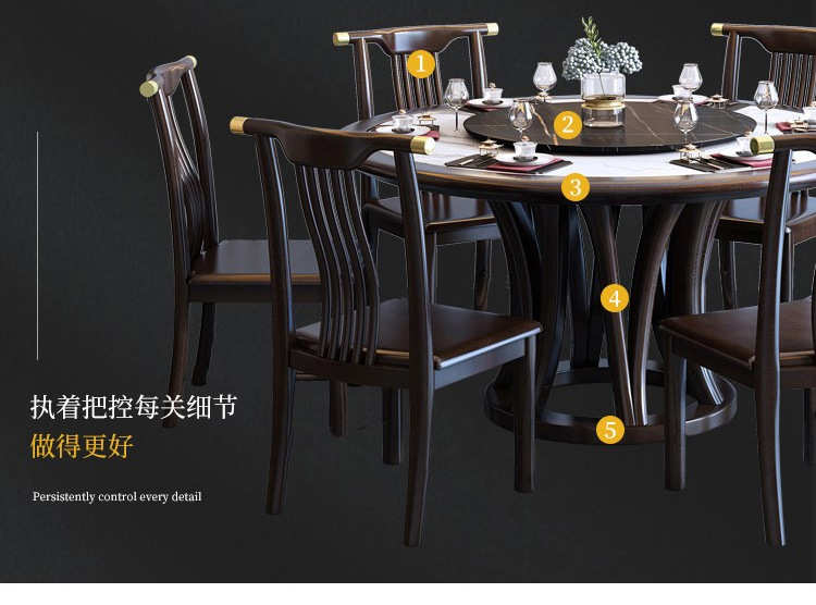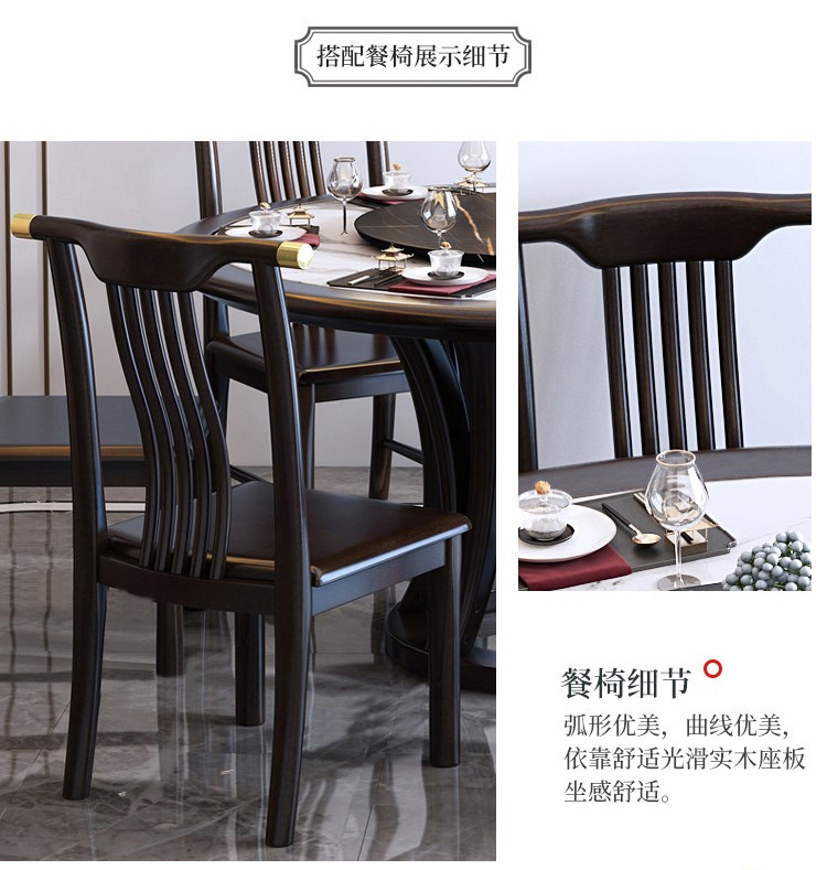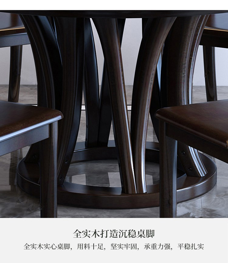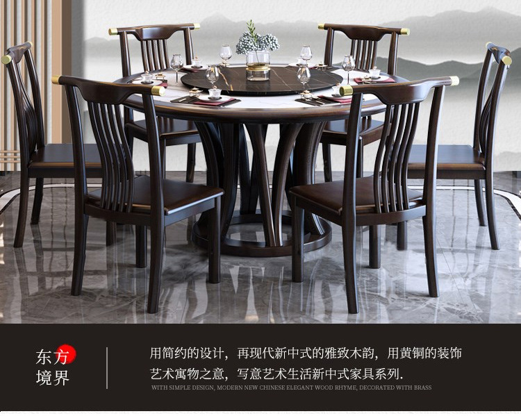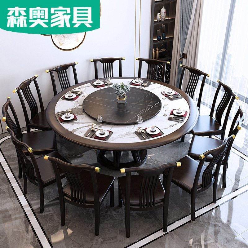 Bàn ghế ăn gỗ nguyên khối kiểu Trung Quốc mới kết hợp đá phiến hiện đại đơn giản bàn ăn tròn nhà hàng bàn tròn lớn