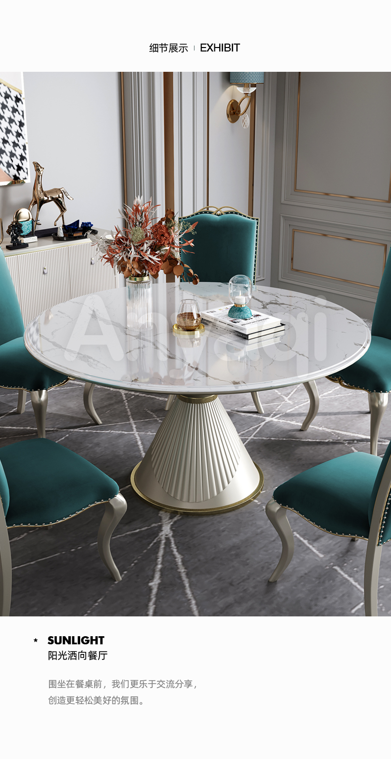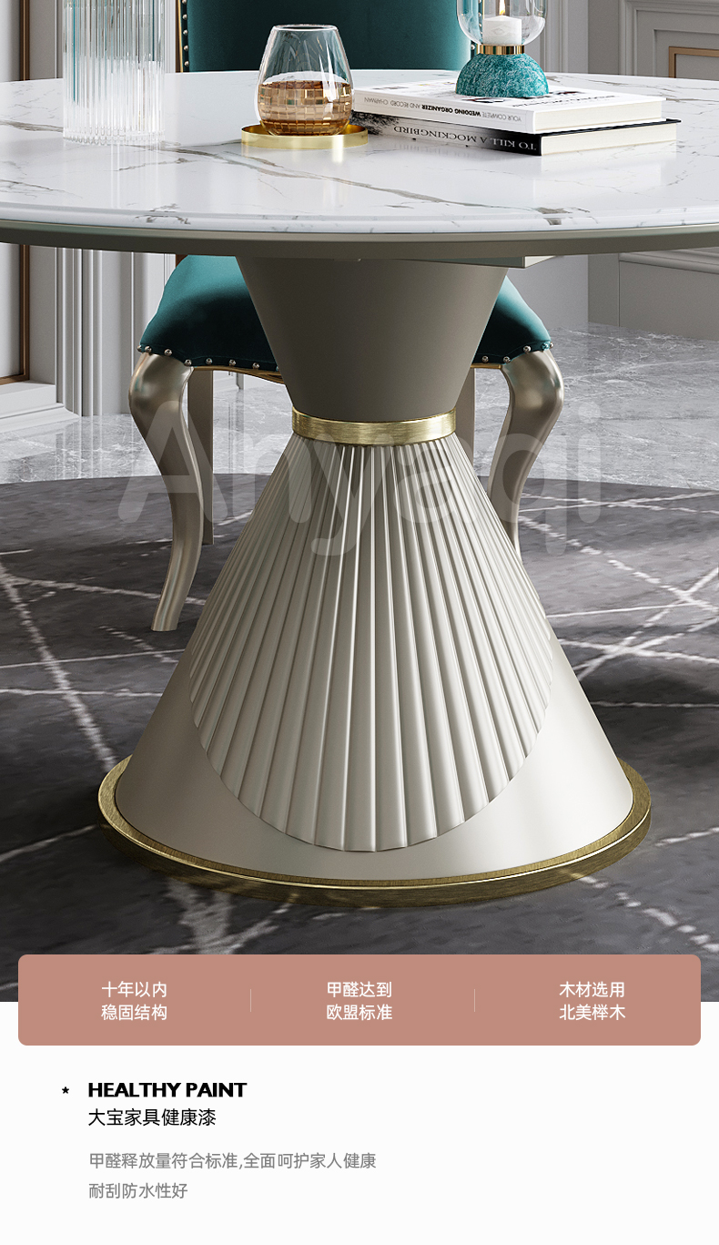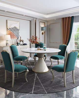 Bàn ghế ăn hình tròn nhập khẩu. là sản phẩm nổi bật trong dòng bàn ăn nhập khẩu, thiết kế hiện đại và sang trọng, phù hợp với nhiều không gian nội thất cao cấp.