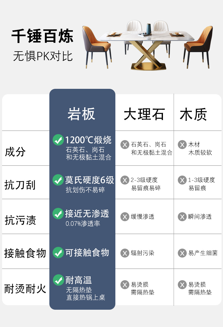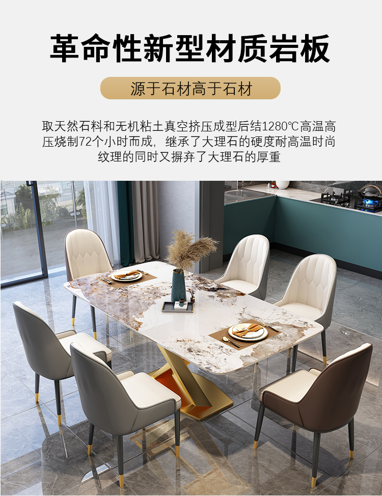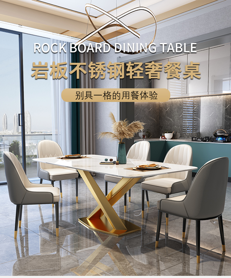 Bàn ghế ăn mặt đá kết hợp hiện đại tối giản cho căn hộ nhỏ căn hộ nhỏ sang trọng ánh sáng sáng đèn bàn ăn hình chữ nhật đa năng – Bàn ăn nhập khẩu cao cấp