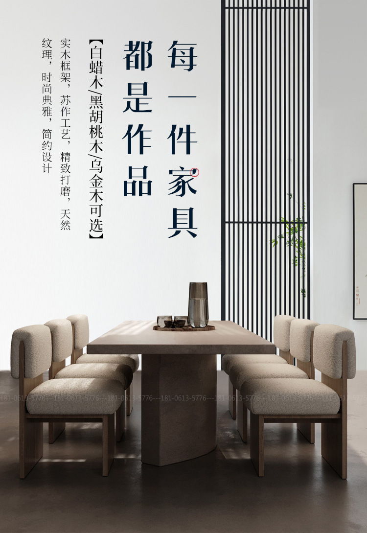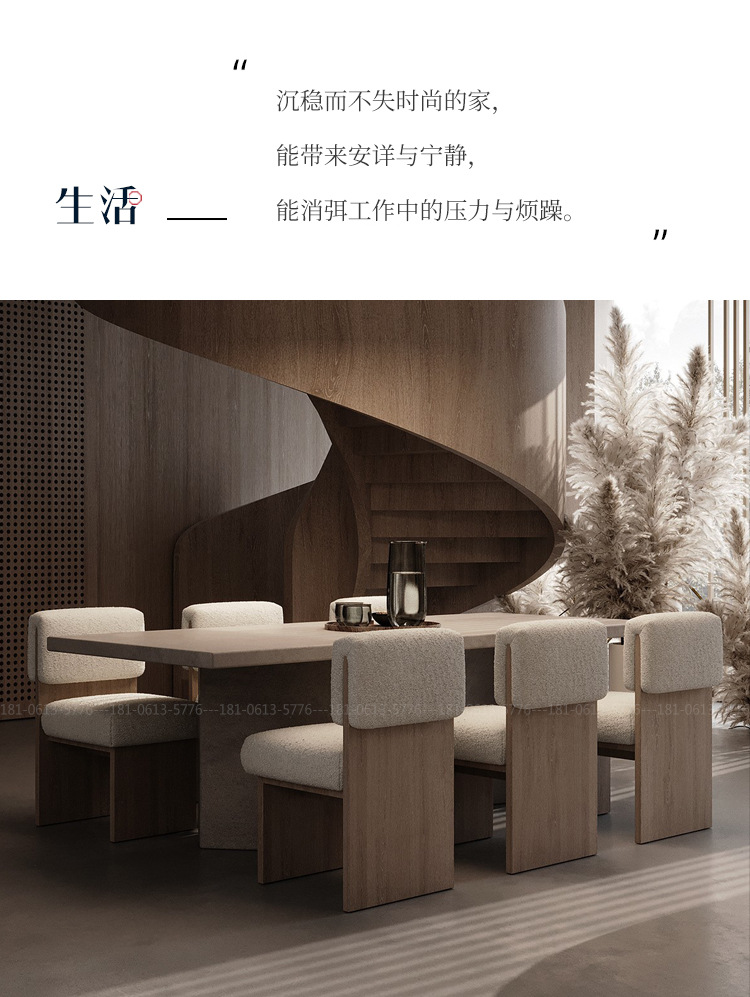 Bàn ghế ăn theo phong cách wabi-sabi bằng gỗ hiện đại, nhà mẫu câu lạc bộ khách sạn biệt thự nhà hàng, nhà thiết kế bàn dài cho nhiều người, bàn trà.
