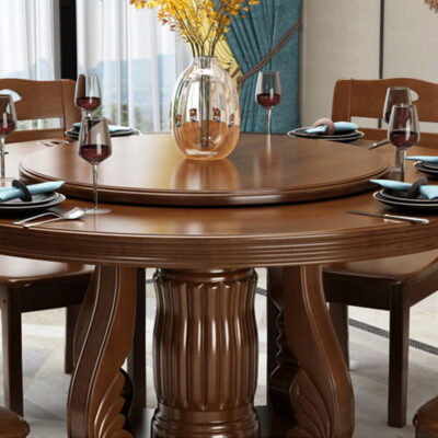 Bàn ghế ăn tròn đơn giản hiện đại của Trung Quốc với bàn xoay tại nhà bàn ăn bàn tròn bàn ăn gỗ nguyên khối kết hợp