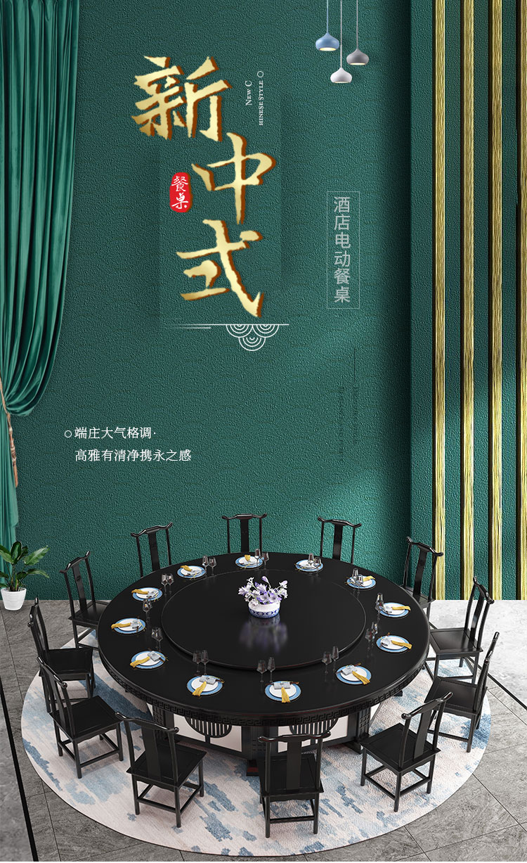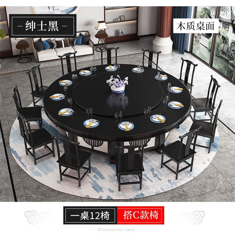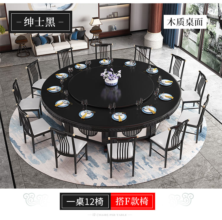 Bàn ghế ăn xoay điện khách sạn bàn bằng gỗ dành cho 20 người khách sạn kiểu Trung Quốc mới với bàn tròn lớn xoay tự động nhà câu lạc bộ homestay – Bàn ăn nhập khẩu cao cấp