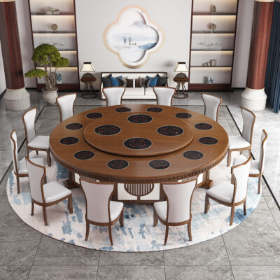 Bàn ghế ăn xoay điện khách sạn bàn bằng gỗ dành cho 20 người khách sạn kiểu Trung Quốc mới với bàn tròn lớn xoay tự động nhà câu lạc bộ homestay là sản phẩm nổi bật trong dòng bàn ăn nhập khẩu, thiết kế hiện đại và sang trọng, phù hợp với nhiều không gian nội thất cao cấp.