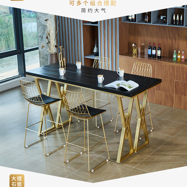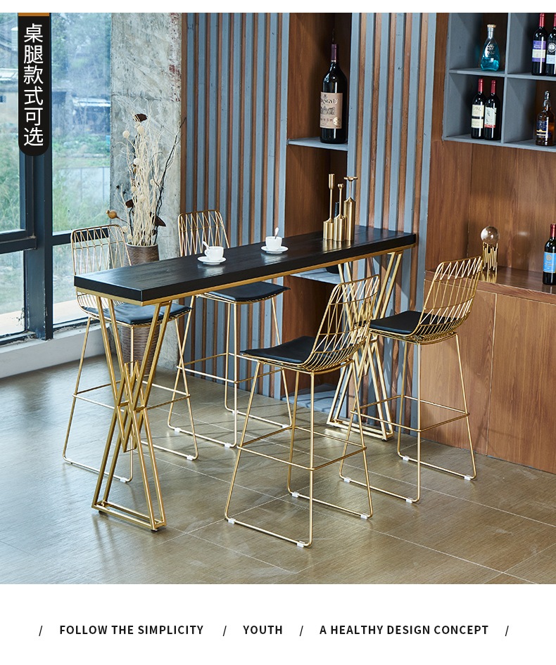 Bàn ghế Bắc Âu Ins Lưới Đỏ Thanh Sắt Bộ bàn Ghế Nhà Cao Bàn – BGCF-988 – Mã sản phẩm BGCF-988. Bắc Âu Ins Lưới Đỏ Thanh Sắt Bộ Bàn Ghế Nhà Cao Bàn Quán Trà Sữa Vách Ngăn Bàn Dài Gỗ Treo Tường Bàn