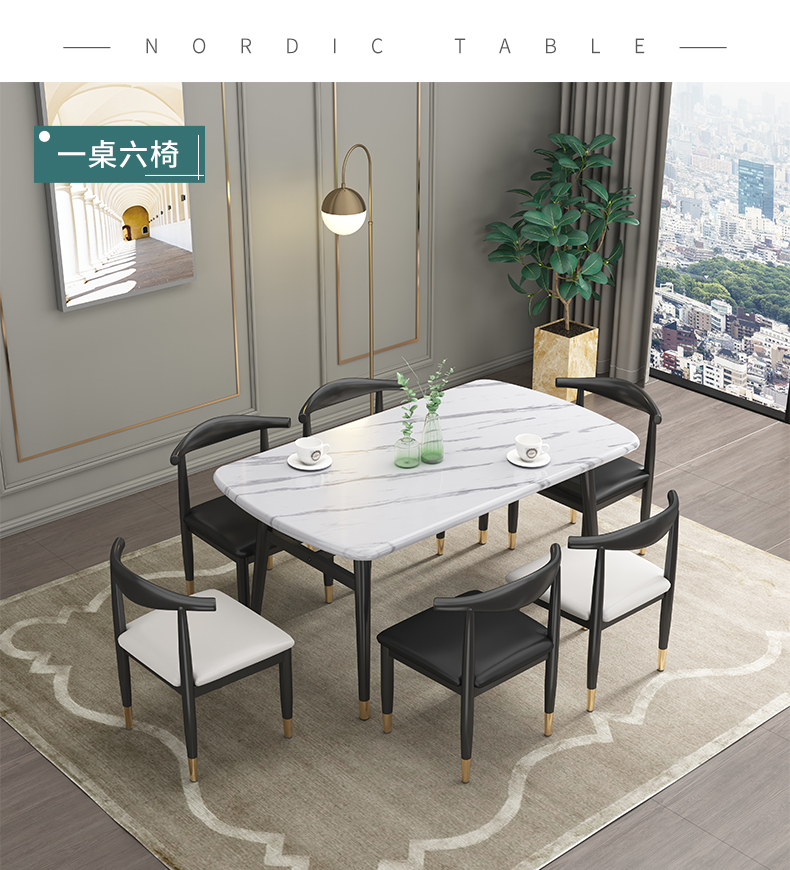 Bàn ghế Bắc Âu sang trọng giả đá cẩm thạch đá phiến nhà – BGCF-272 – Mã sản phẩm BGCF-272. Bắc Âu ánh sáng sang trọng giả đá cẩm thạch đá phiến nhà chung cư nhỏ bàn ghế ăn kết hợp khách sạn nhà hàng quán cà phê bàn ăn