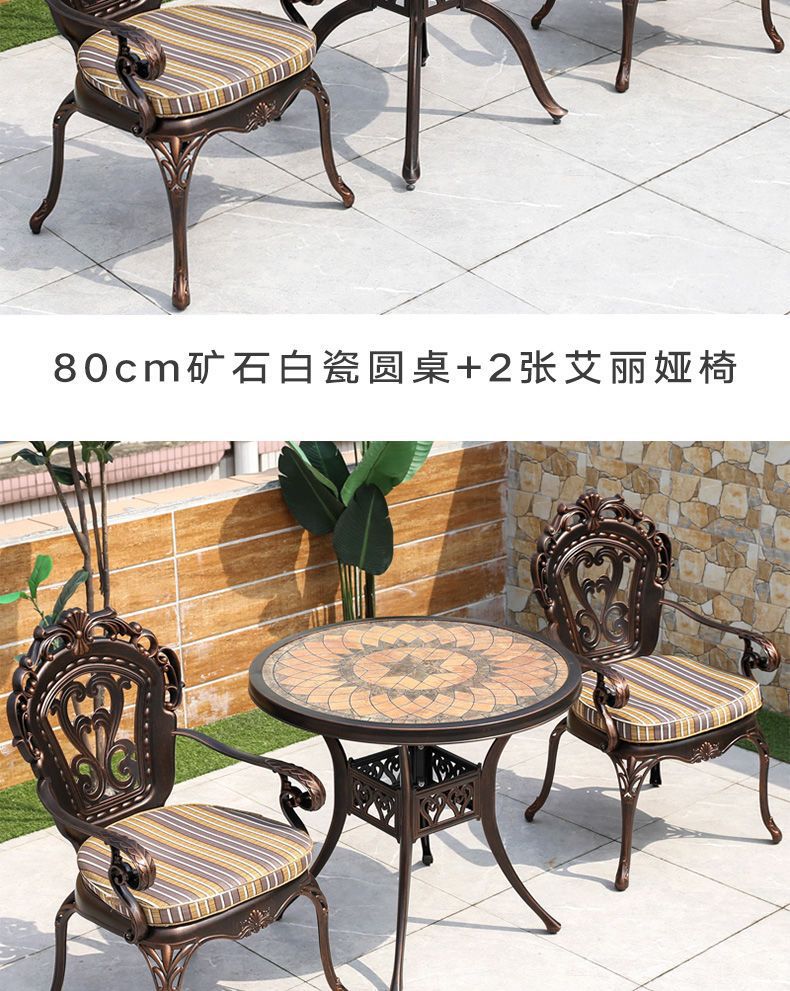Bàn ghế ban công nhôm đúc đơn giản hiện đại tối giản ngoài trời sân vườn sắt nghệ thuật kết hợp ba mảnh trong nhà và ngoài trời
