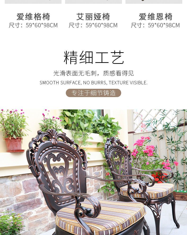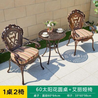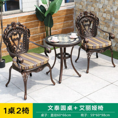 Bàn ghế ban công nhôm đúc đơn giản hiện đại tối giản ngoài trời sân vườn sắt nghệ thuật kết hợp ba mảnh trong nhà và ngoài trời được thiết kế để tạo điểm nhấn cho khu vực sân vườn, ban công hoặc không gian ngoài trời.