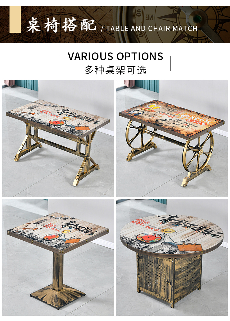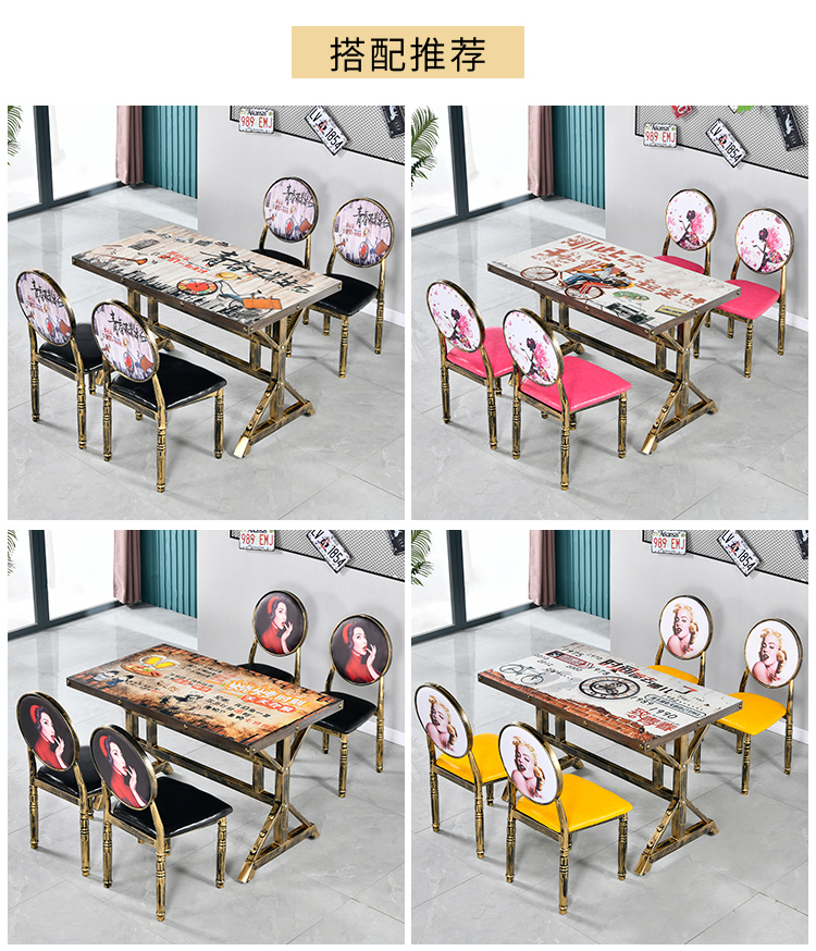 Bàn ghế Chủ đề nhà hàng phương tây Bàn thức ăn nhanh thương – BGCF-25 – Mã sản phẩm BGCF-25. Chủ đề retro nhà hàng phương tây bàn thức ăn nhanh thương mại phong cách công nghiệp phục vụ thịt nướng nhà hàng đồ ăn nhanh bàn ghế trà sữa kết hợp. 246.314
