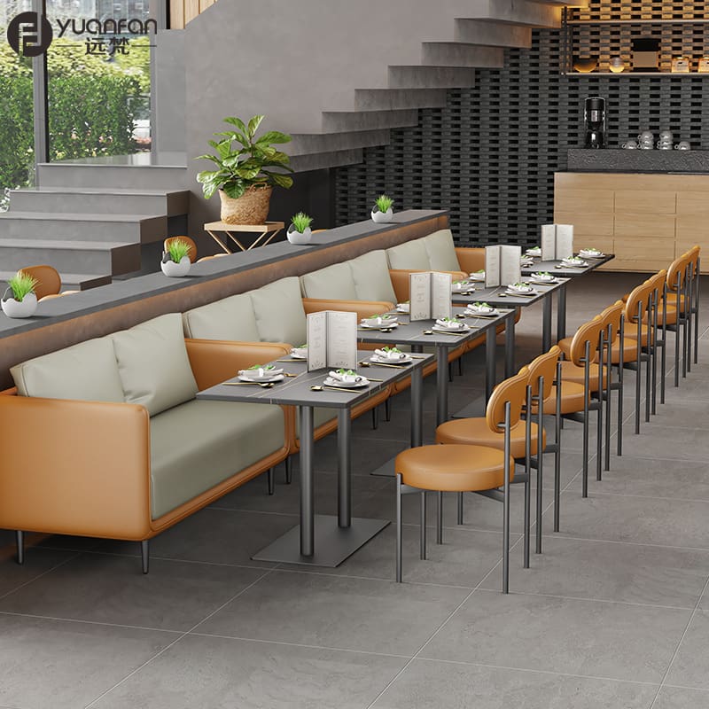 Mã sản phẩm: YUANFAN-083 Nhãn hiệu: Yuanfan Màu sắc: Ghế sofa đôi màu nâu/Ghế đơn màu nâu/Bàn dài đá đen 120*60/Bàn tròn đá phiến đen 60/Bàn tròn đá phiến đen 60 Gấp: Không Model: YUANFAN-083 Phương pháp gia công: Tùy chỉnh bằng hình ảnh Có bằng sáng chế không: Không Thông số kỹ thuật: 120*70*80 Có mô hình 3D không: Có Có giao tận nơi không: Không Có cung cấp dịch vụ lắp đặt hay không: Không Cho dù đó là người nộp thuế chung: Không Chức năng: Tháo rời Chất liệu: Kim loại Không gian: Nhà hàng Đối tượng áp dụng: người lớn có xuất khẩu xuyên biên giới hay không Nguồn cung cấp độc quyền: không Phong cách: hiện đại và đơn giản Sản phẩm sở hữu thiết kế hiện đại, tinh tế, dễ dàng kết hợp với nhiều phong cách nội thất. Phù hợp sử dụng trong các không gian như quán cà phê, trà sữa, nhà hàng hoặc khách sạn. Là lựa chọn lý tưởng để nâng tầm không gian kinh doanh và mang lại trải nghiệm thoải mái cho khách hàng.