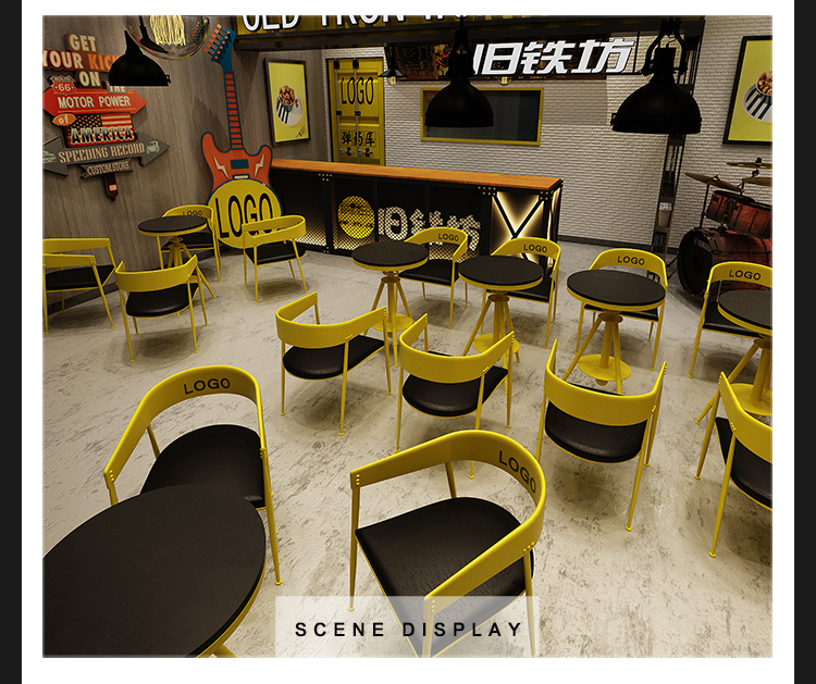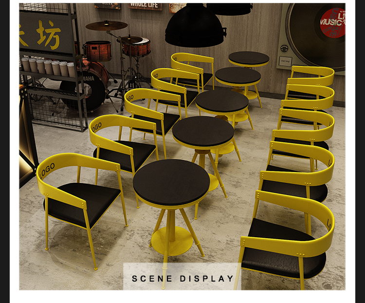 Bàn ghế Công nghiệp Wind Tavern Quán trà sữa Bàn ghế Net – BGCF-961 – Mã sản phẩm BGCF-961. Công nghiệp Wind Tavern Quán trà sữa Bàn ghế Net Red Creative Ghế sắt mỹ thuật màu vàng Bộ bàn trà hình tròn của quán cà phê