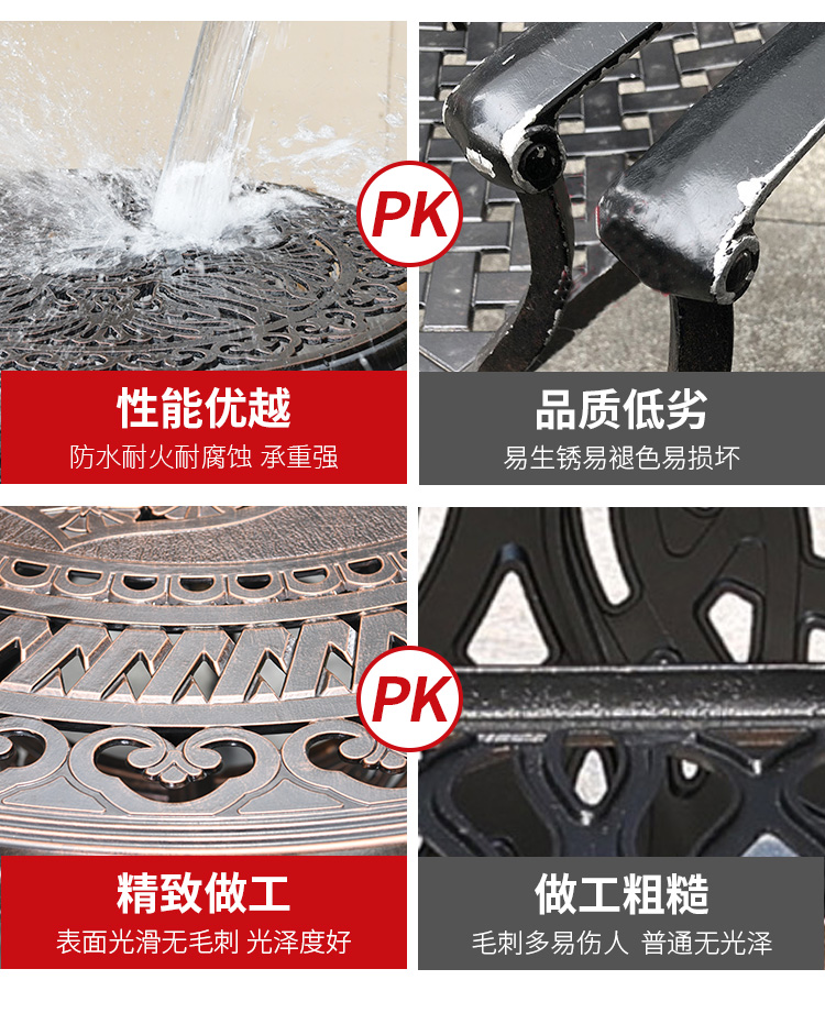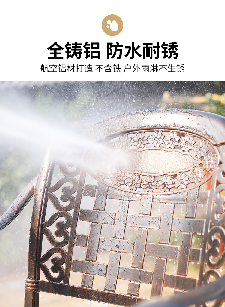 Bàn ghế Đặc biệt Bàn ghế Thông thủy bằng Nhôm Đúc Ngoài trời Sân vườn Ban công Giải trí Biệt thự Sân thượng Sắt mỹ thuật ngoài trời là lựa chọn lý tưởng cho không gian công cộng, sân vườn hoặc khu đô thị. Sản phẩm giúp nâng cao hình ảnh chuyên nghiệp và sạch đẹp cho môi trường sống.