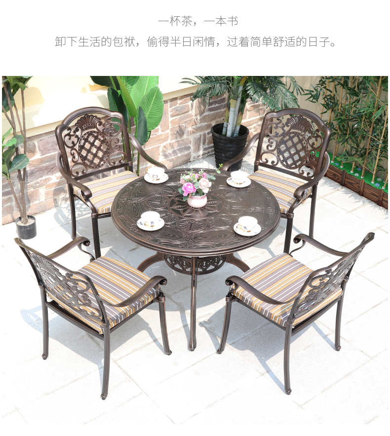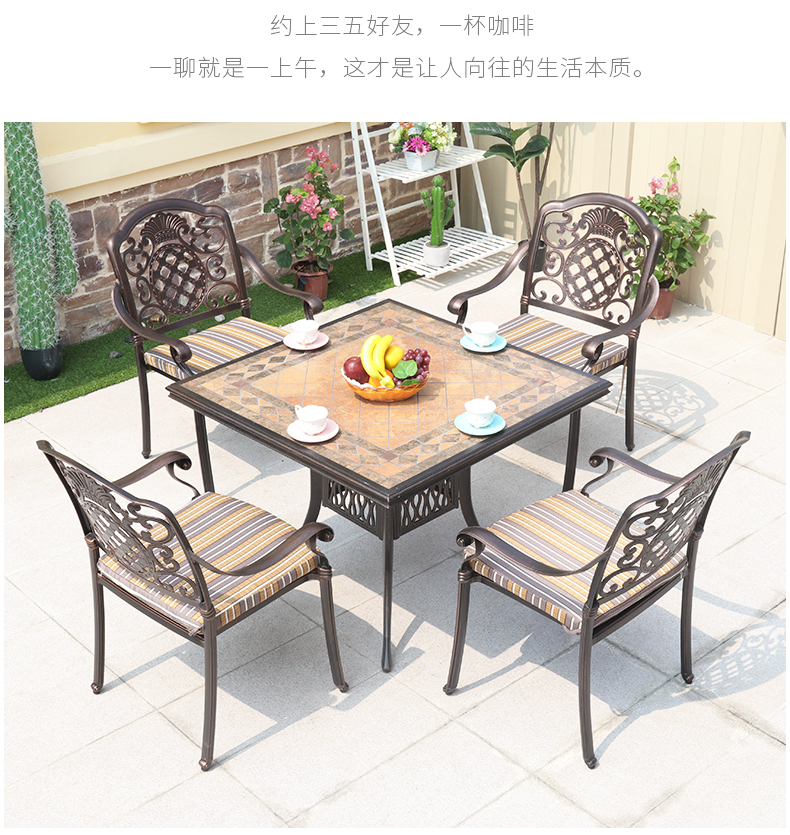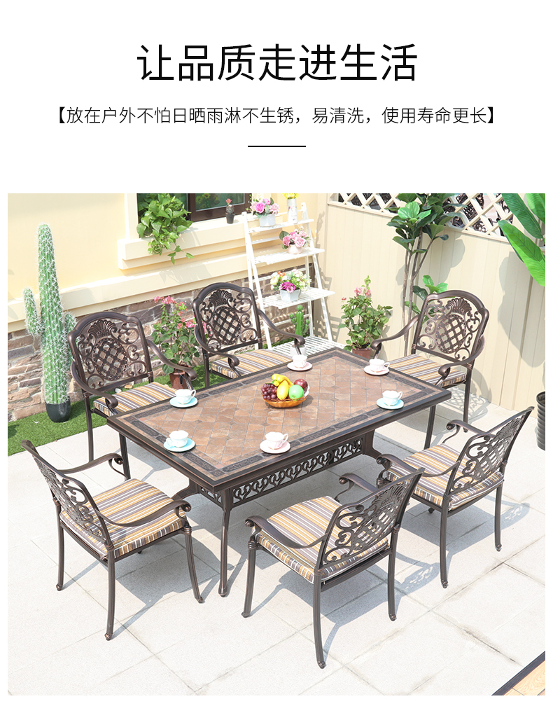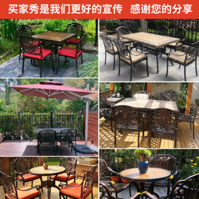 Bàn ghế giải trí ngoài trời kết hợp xích đu ngoài trời sân vườn sắt rèn đơn giản gạch nhôm bàn dài 6 chỗ ngồi