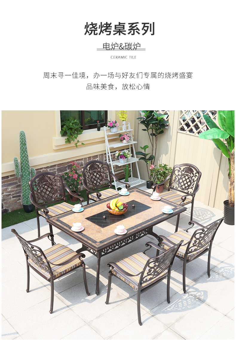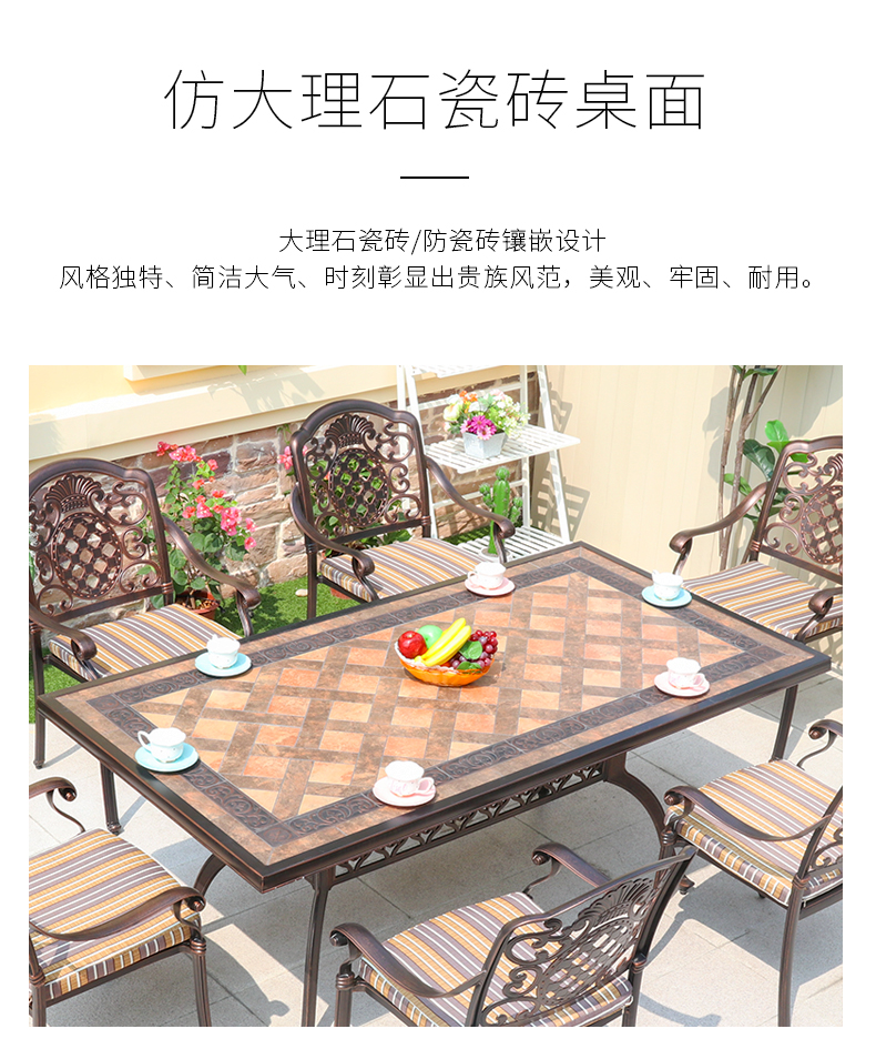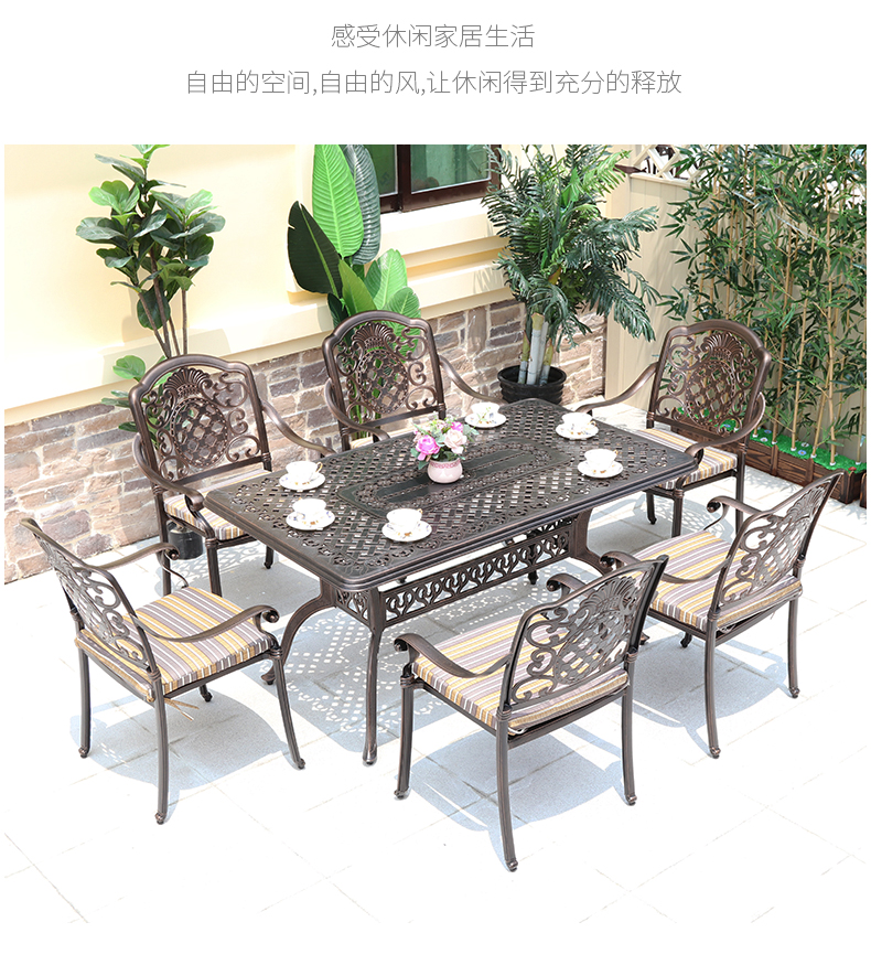 Bàn ghế giải trí ngoài trời kết hợp xích đu ngoài trời sân vườn sắt rèn đơn giản gạch nhôm bàn dài 6 chỗ ngồi là lựa chọn lý tưởng cho không gian ngoài trời hiện đại. Liên hệ ngay để được hỗ trợ nhập khẩu và tư vấn chi tiết.
