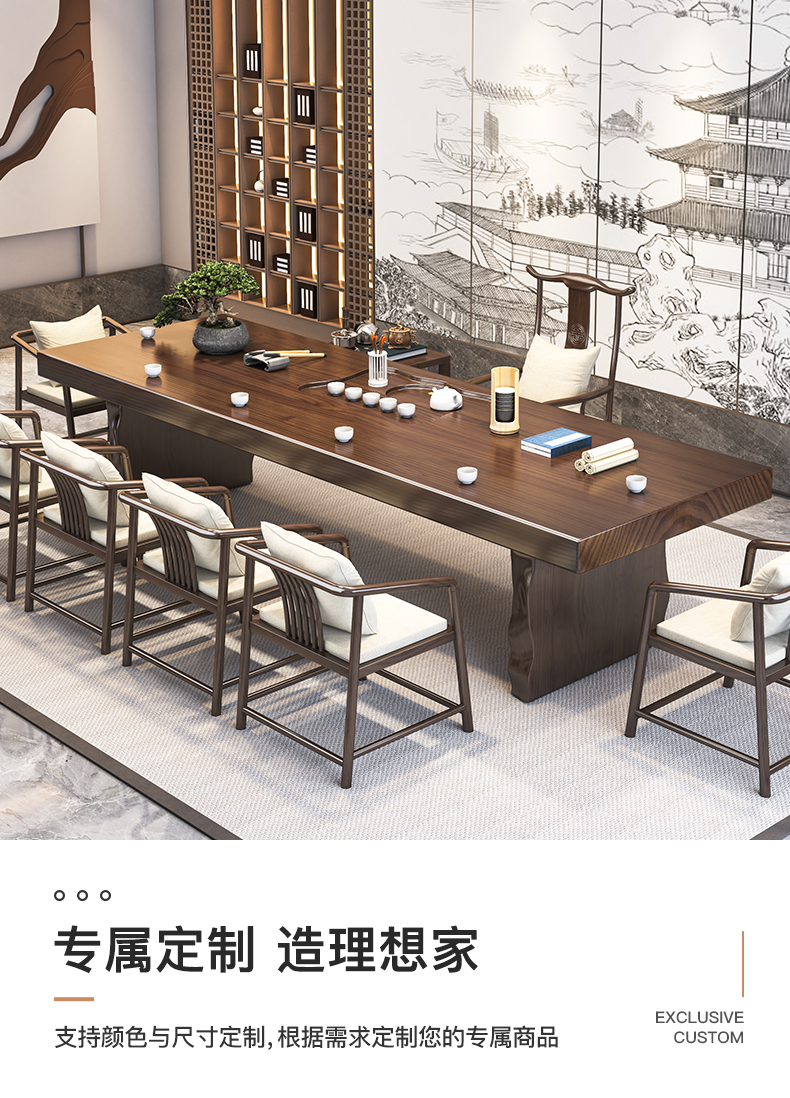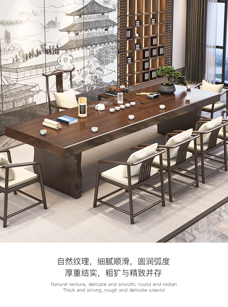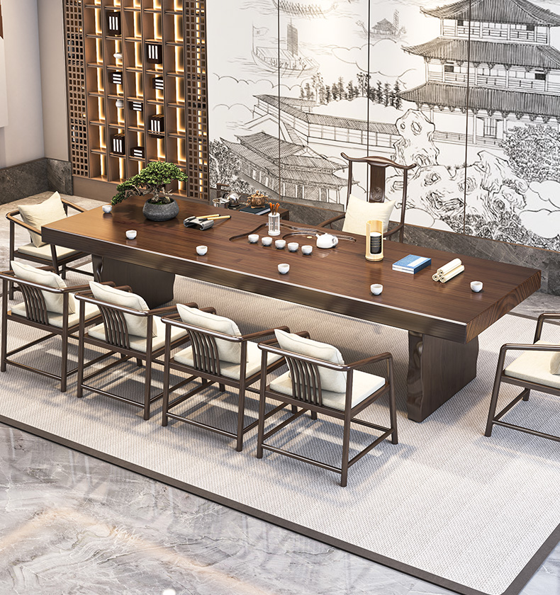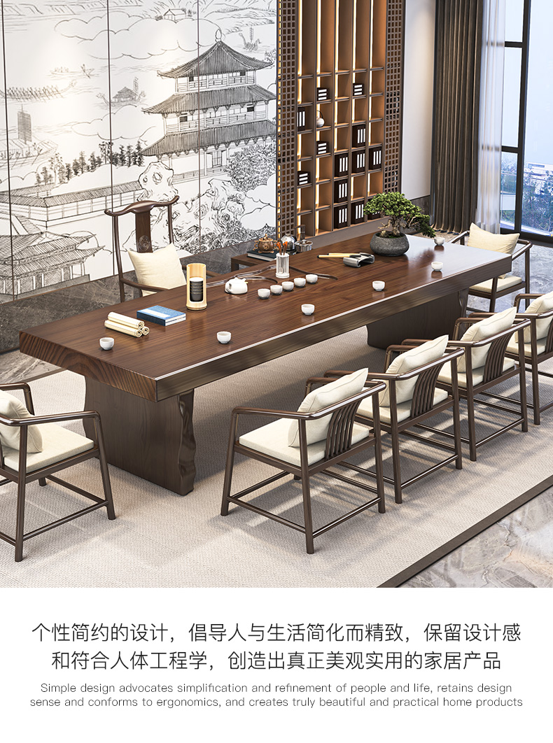 Bàn ghế gỗ nguyên khối kết hợp phòng khách văn phòng mới phong cách Trung Quốc Zen Văn phòng trà Kung Fu bàn trà tấm lớn hiện đại tối giản