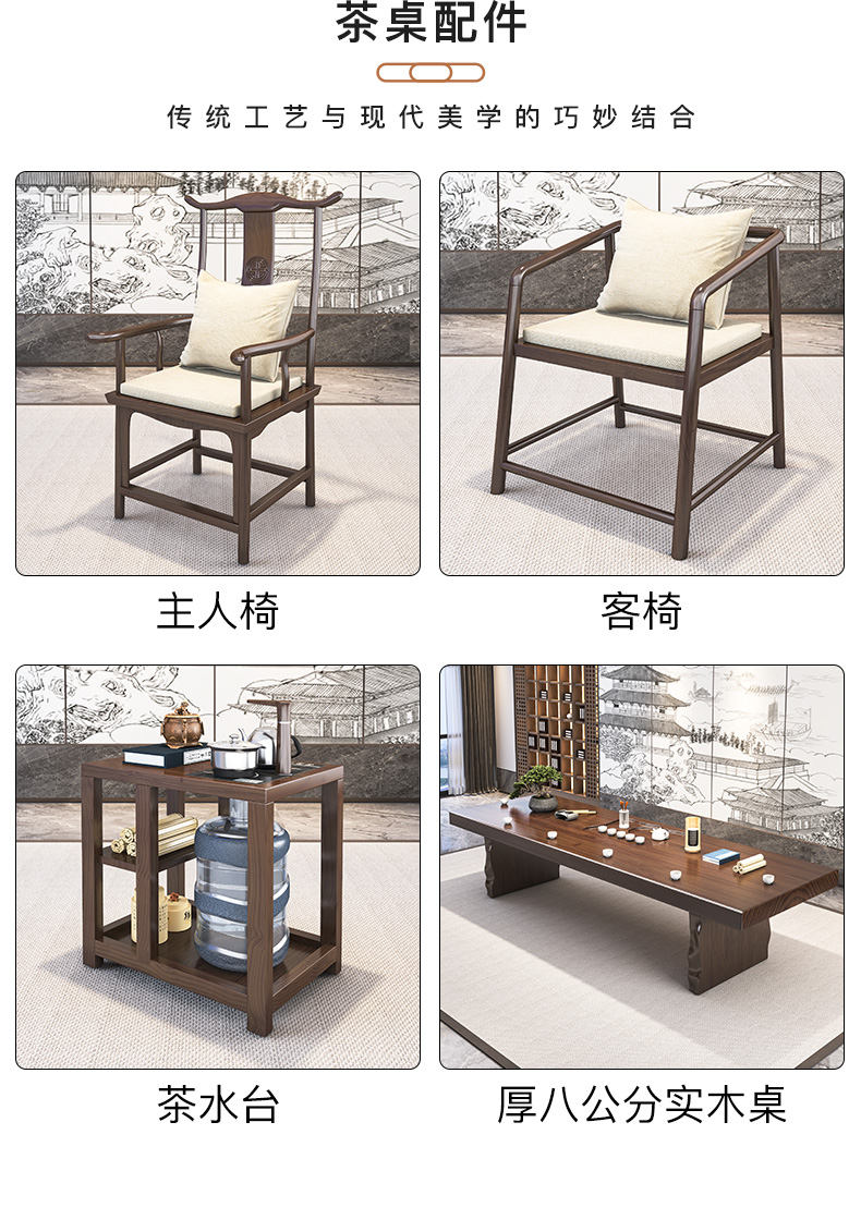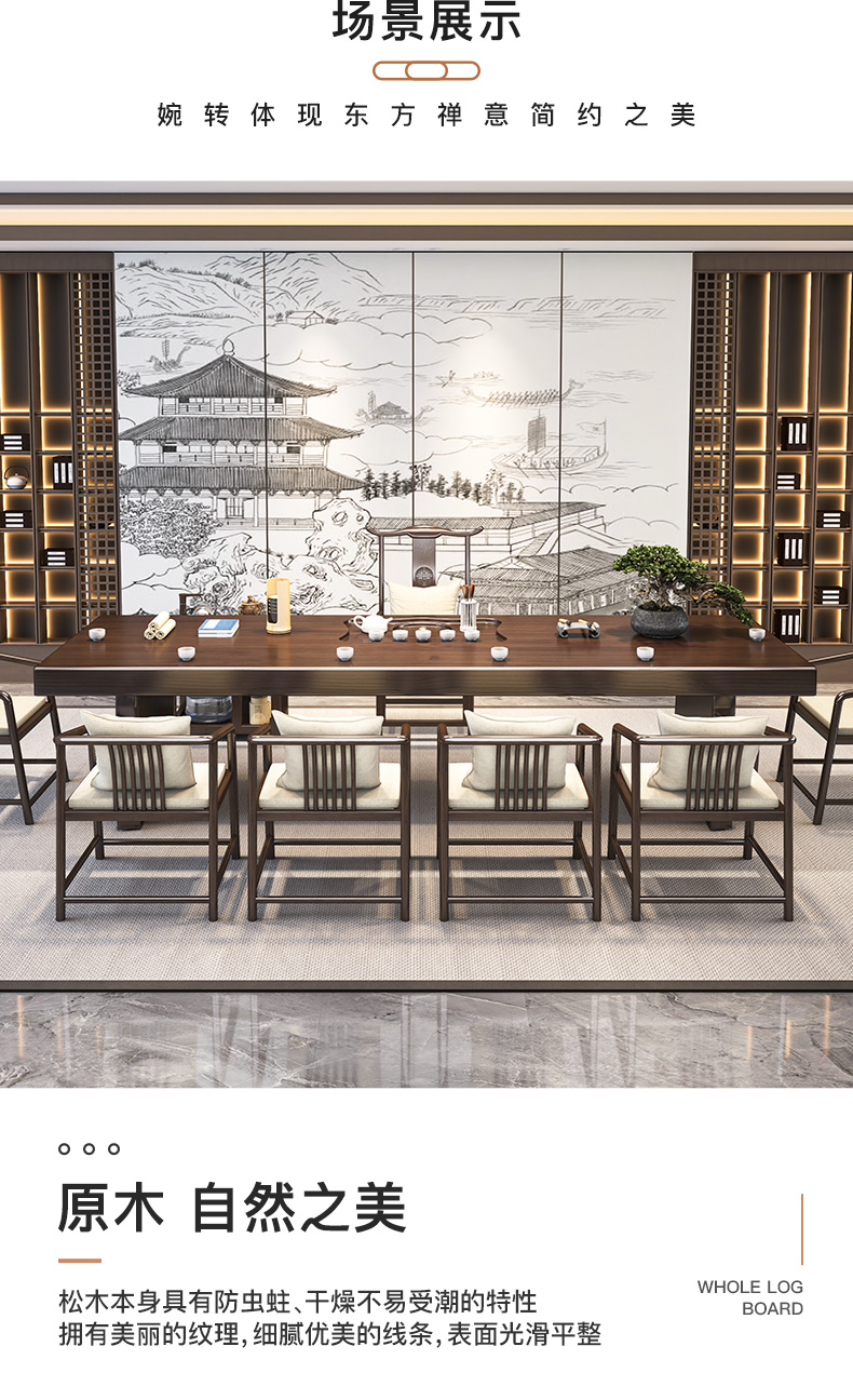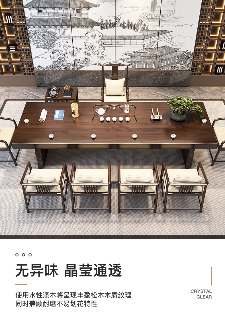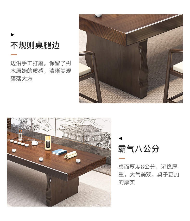 Bàn ghế gỗ nguyên khối kết hợp phòng khách văn phòng mới phong cách Trung Quốc Zen Văn phòng trà Kung Fu bàn trà tấm lớn hiện đại tối giản