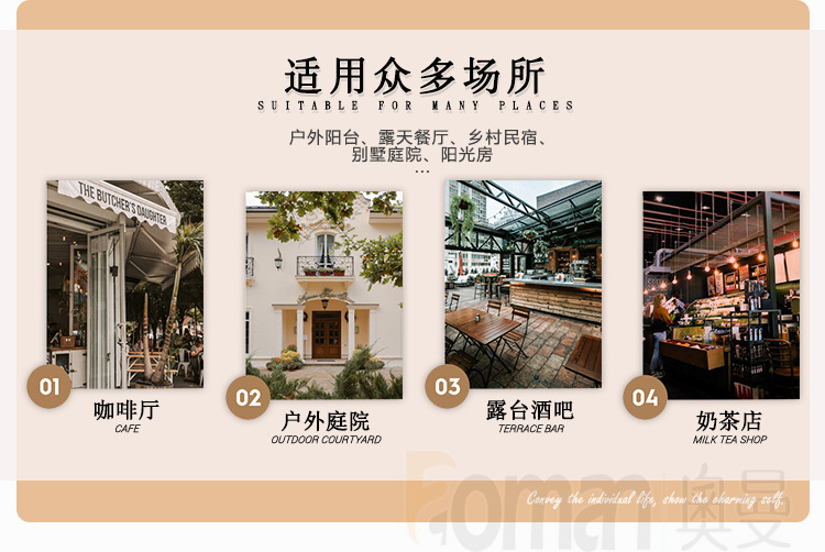 Bàn ghế gỗ nhựa ngoài trời Aoman giải trí bàn ghế ngoài trời kết hợp cafe sân vườn quầy bar ăn uống bàn ghế sân vườn được thiết kế để tạo điểm nhấn cho khu vực sân vườn, ban công hoặc không gian ngoài trời.