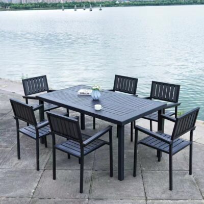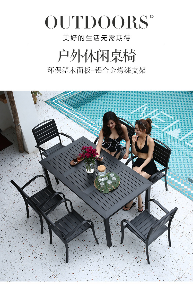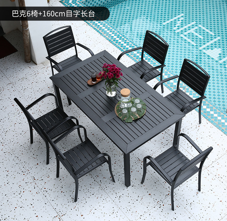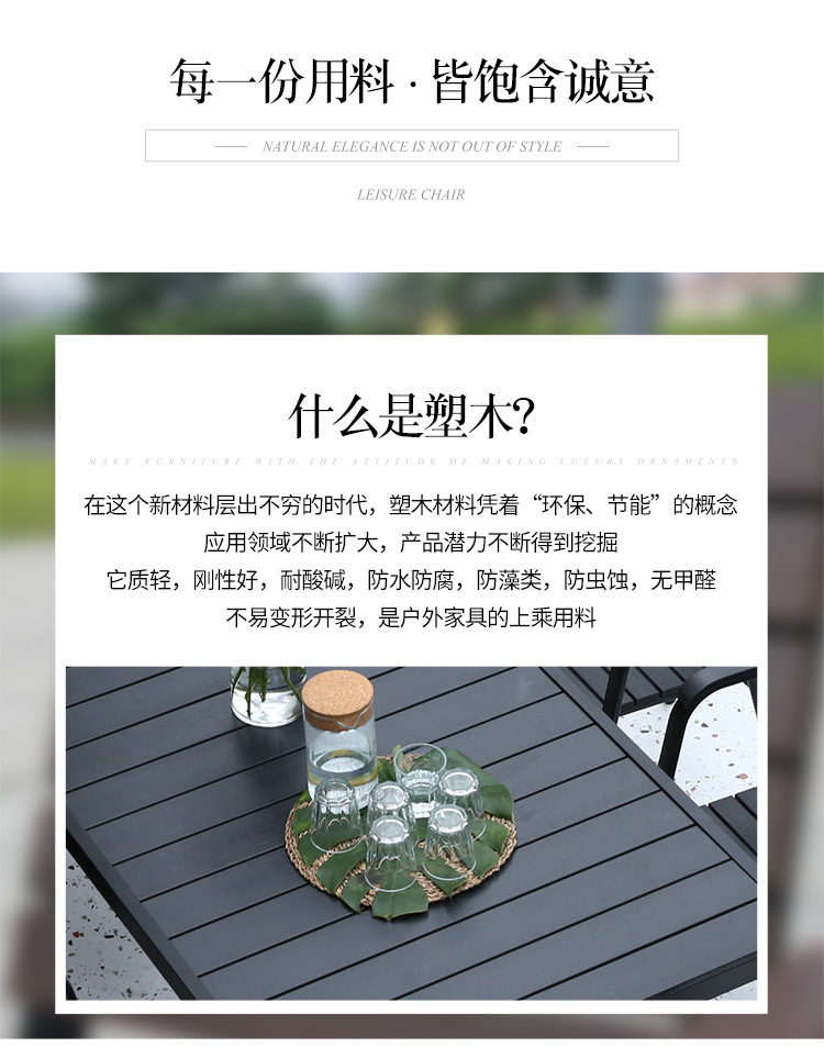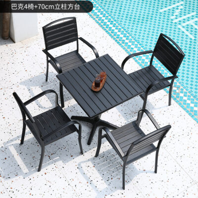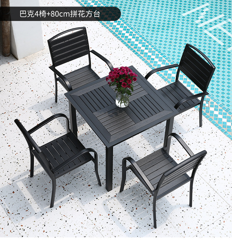 Bàn ghế gỗ nhựa ngoài trời chống thấm nước và chống nắng sân vườn công viên bàn ăn sân vườn ghế giải trí ngoài trời ghế ngoài trời
