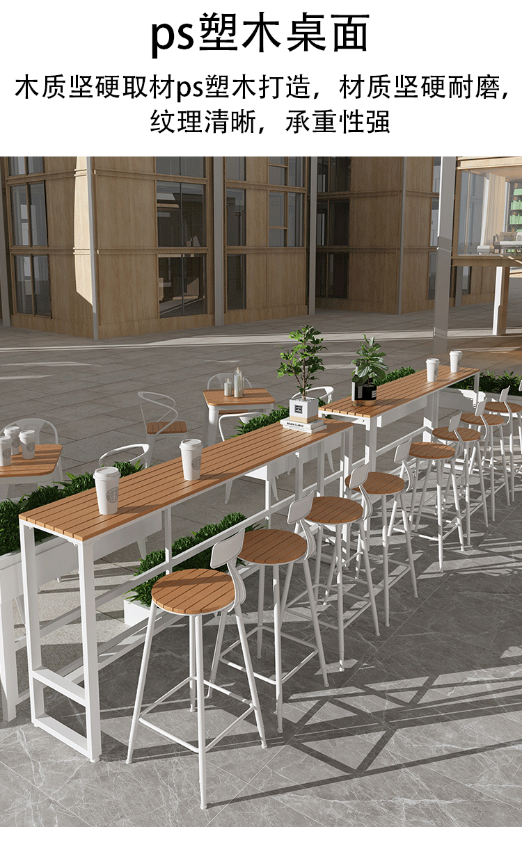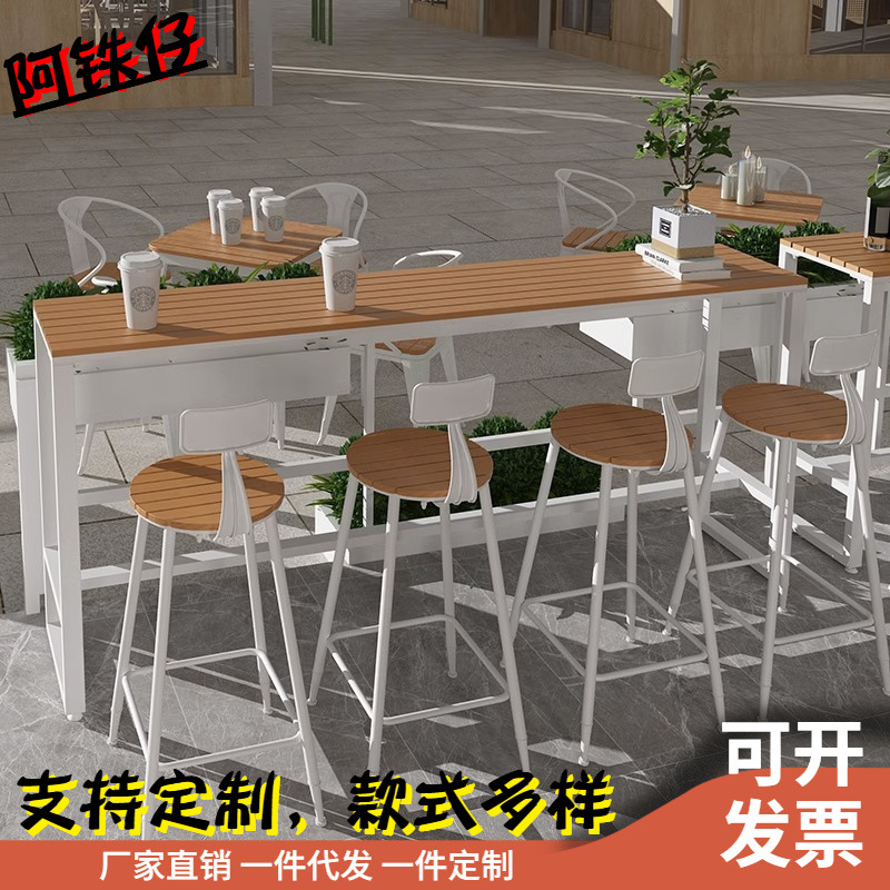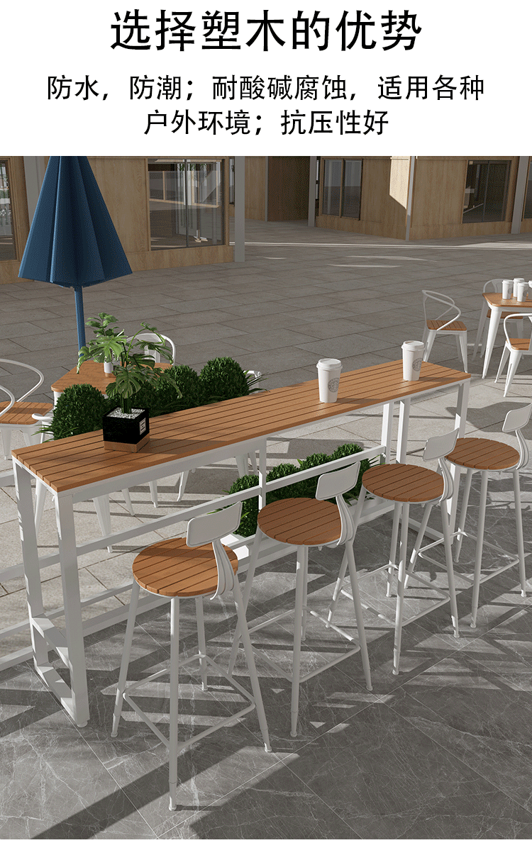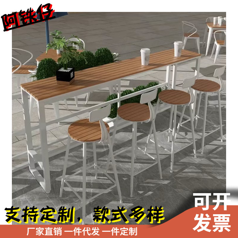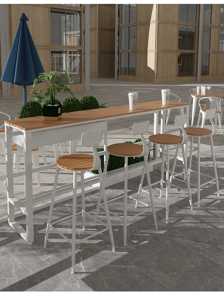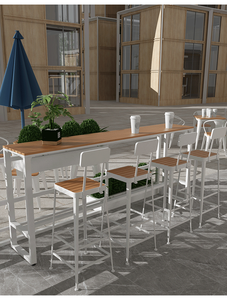 Bàn ghế gỗ nhựa ngoài trời đơn giản hiện đại chống ăn mòn quán cà phê ngoài trời ban công nhà cao chân tường quầy bar