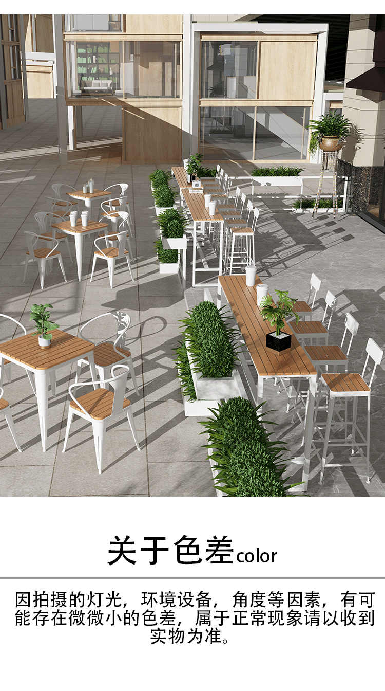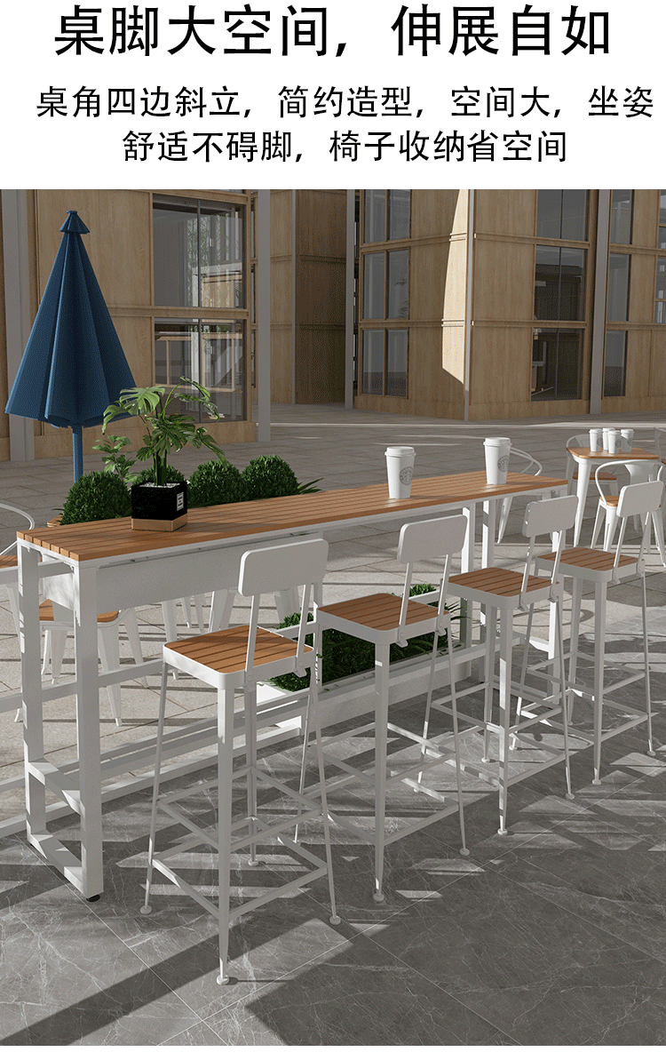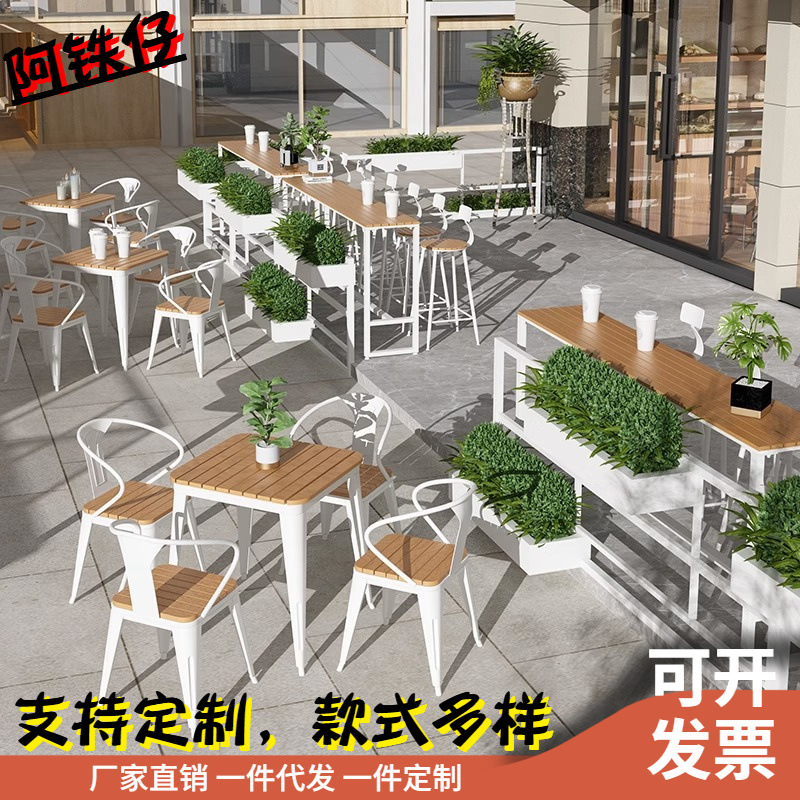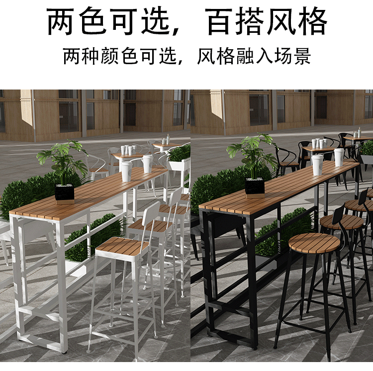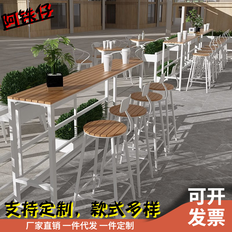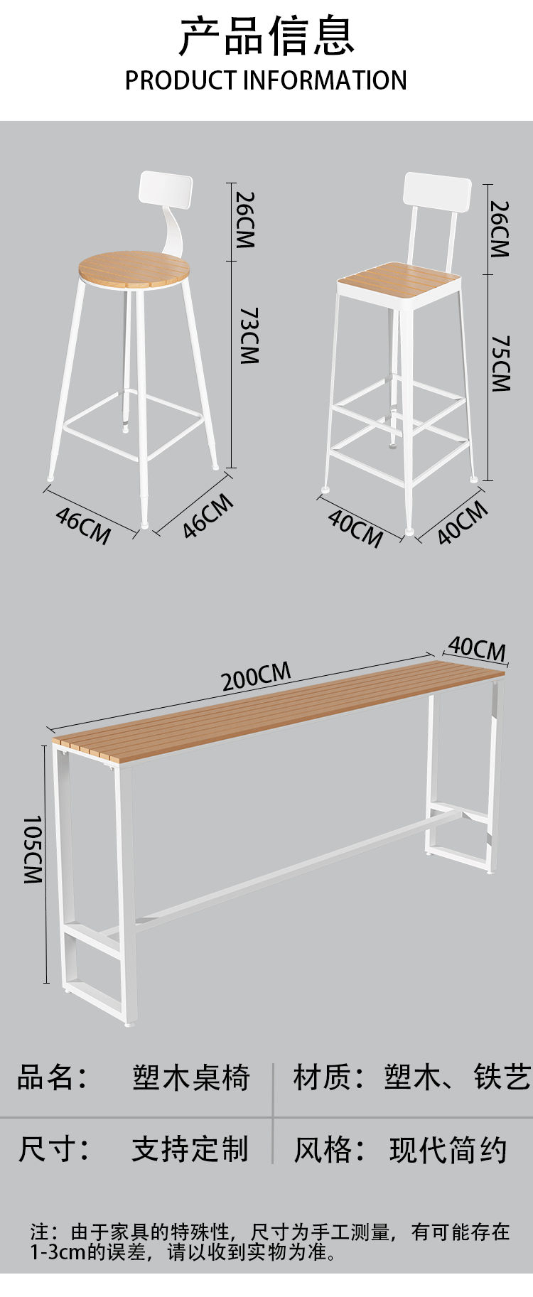 Bàn ghế gỗ nhựa ngoài trời đơn giản hiện đại chống ăn mòn quán cà phê ngoài trời ban công nhà cao chân tường quầy bar