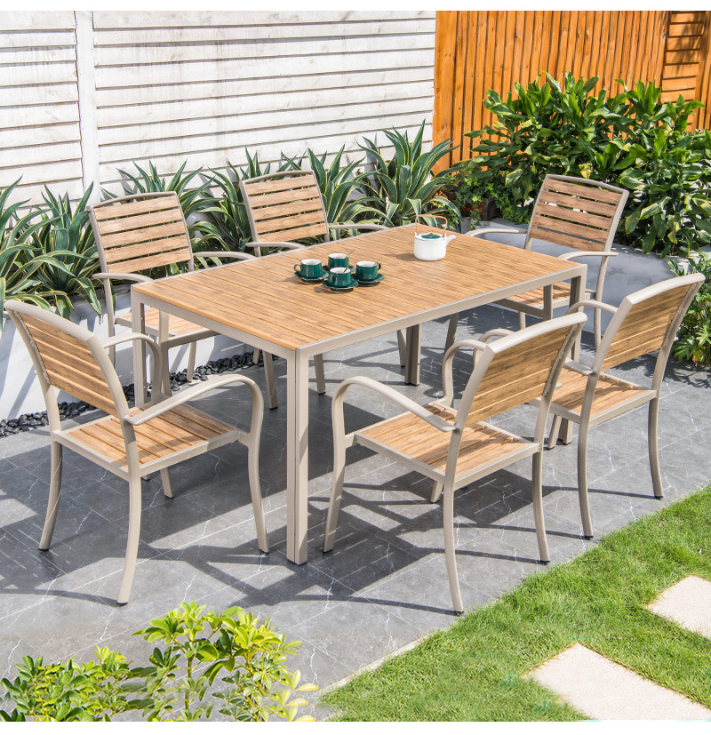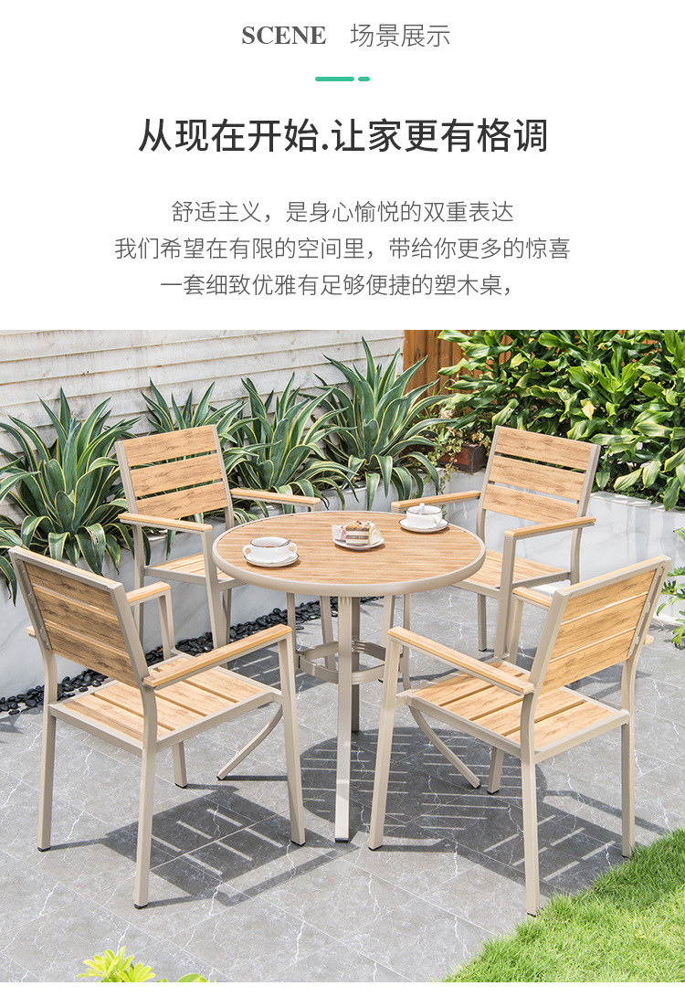 Bàn ghế gỗ nhựa ngoài trời sân trong chống thấm nước chống nắng ban công ngoài trời khu vườn giải trí ngoài trời bàn ghế màu là lựa chọn lý tưởng cho không gian công cộng, sân vườn hoặc khu đô thị. Sản phẩm giúp nâng cao hình ảnh chuyên nghiệp và sạch đẹp cho môi trường sống.