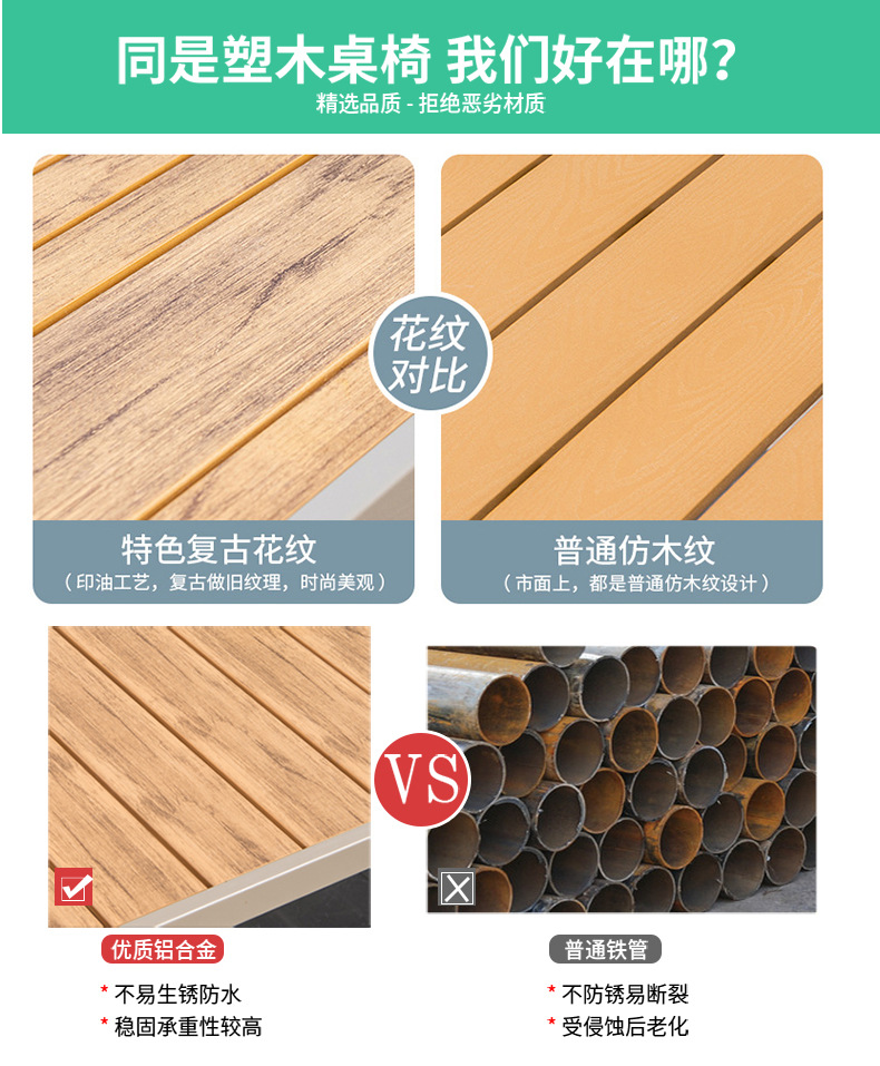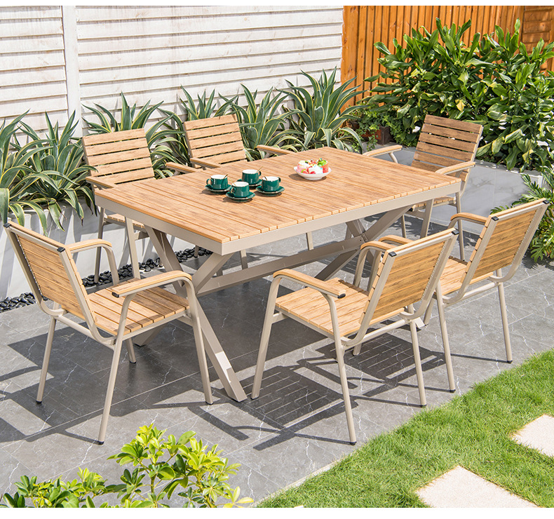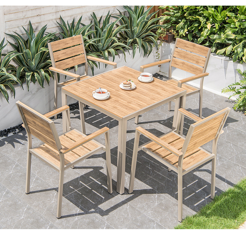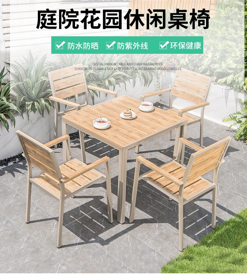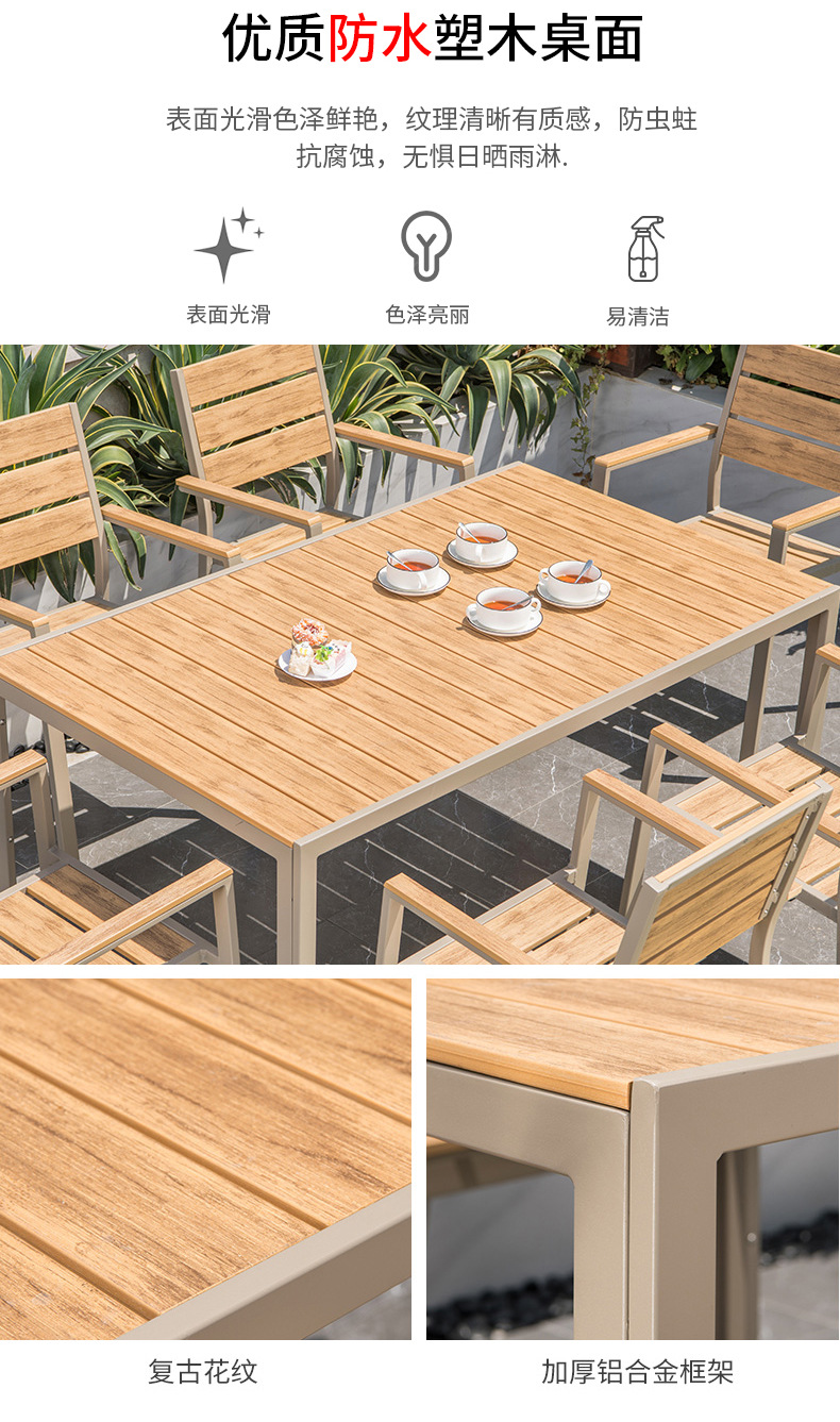 Sản phẩm nổi bật với các đặc điểm: Bàn ghế gỗ nhựa ngoài trời sân trong chống thấm nước chống nắng ban công ngoài trời khu vườn giải trí ngoài trời kết hợp bàn ghế màu gỗ tếch