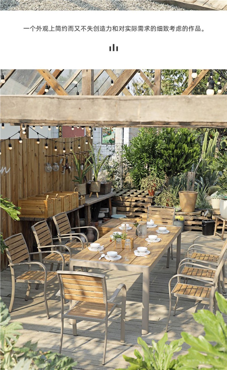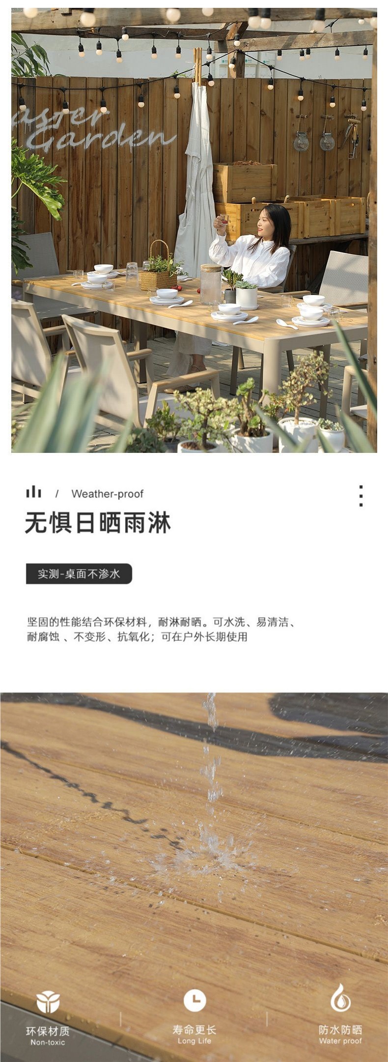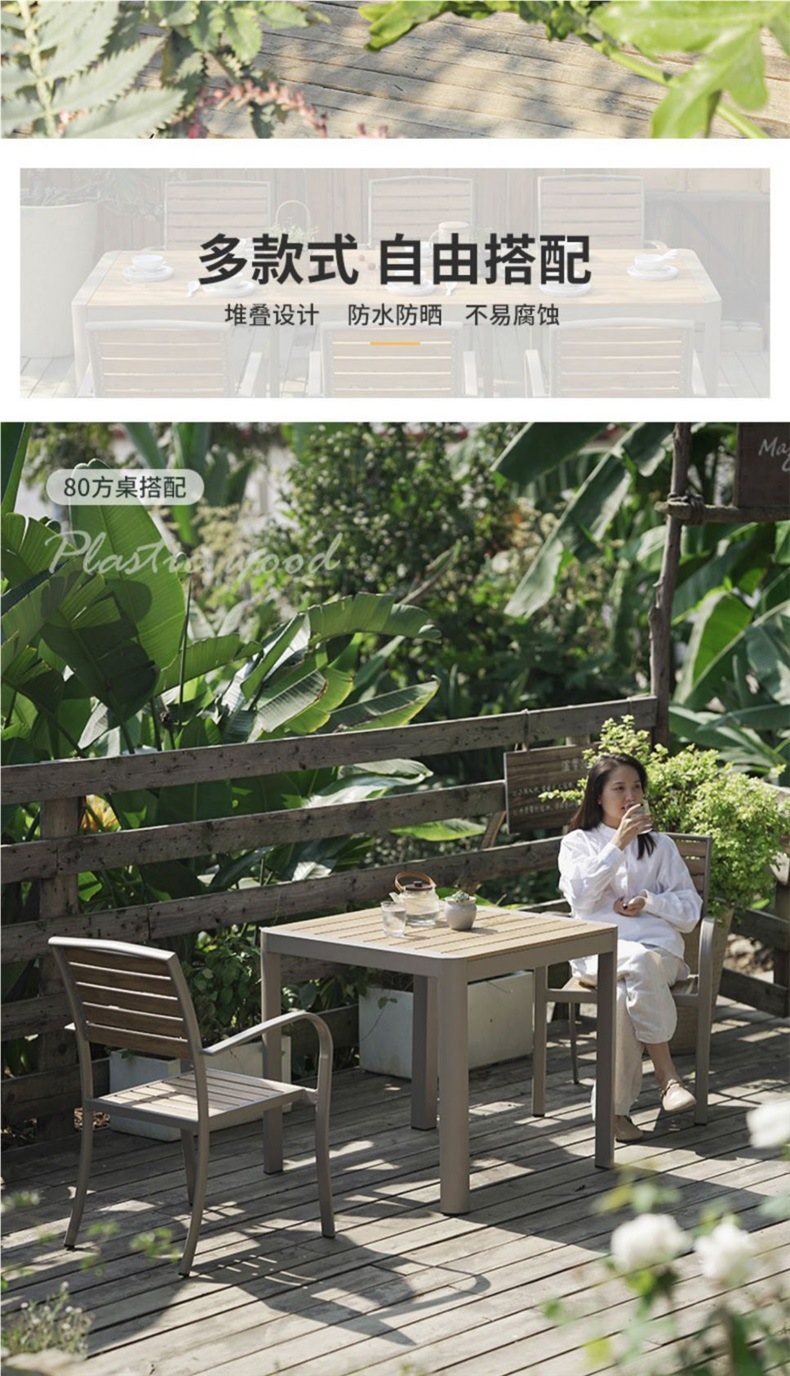 Sản phẩm nổi bật với các đặc điểm: Bàn ghế gỗ nhựa ngoài trời sân vườn bằng gỗ chống ăn mòn chống thấm ban công ngoài trời giải trí ngoài trời kết hợp bàn ghế sân vườn
