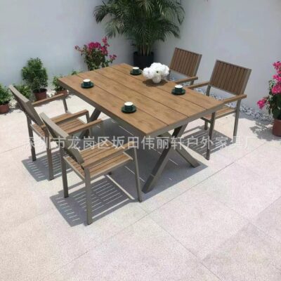 Bàn ghế gỗ nhựa ngoài trời sân vườn chống ăn mòn chống thấm nước bàn ghế kết hợp cafe khách sạn bàn ghế ăn giải trí