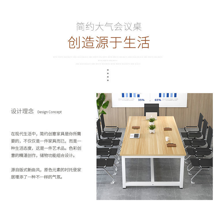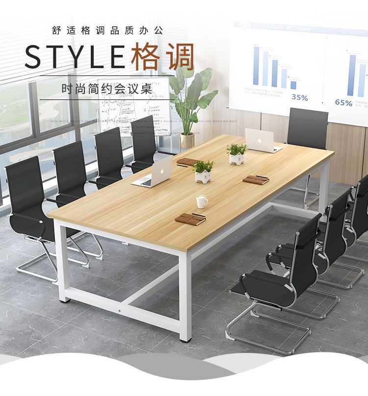 Bàn ghế hội nghị dài bằng thép-gỗ đàm phán đơn giản kết hợp bàn làm việc huấn luyện và đào tạo nhân viên Bàn làm việc văn phòng hiện đại đơn giản