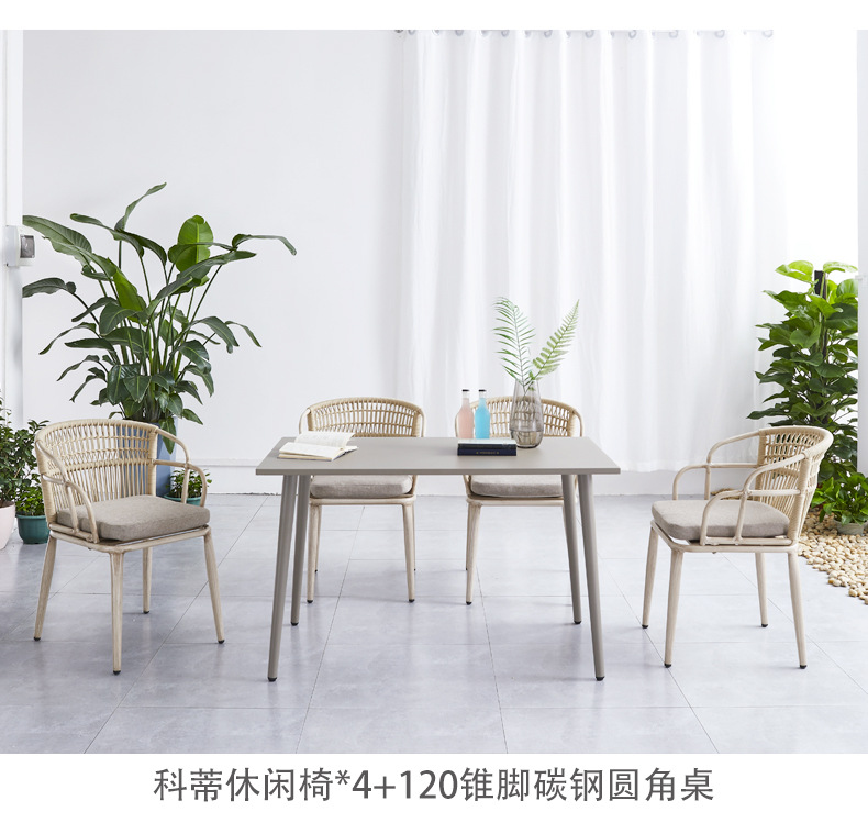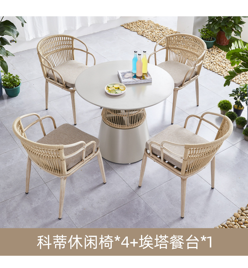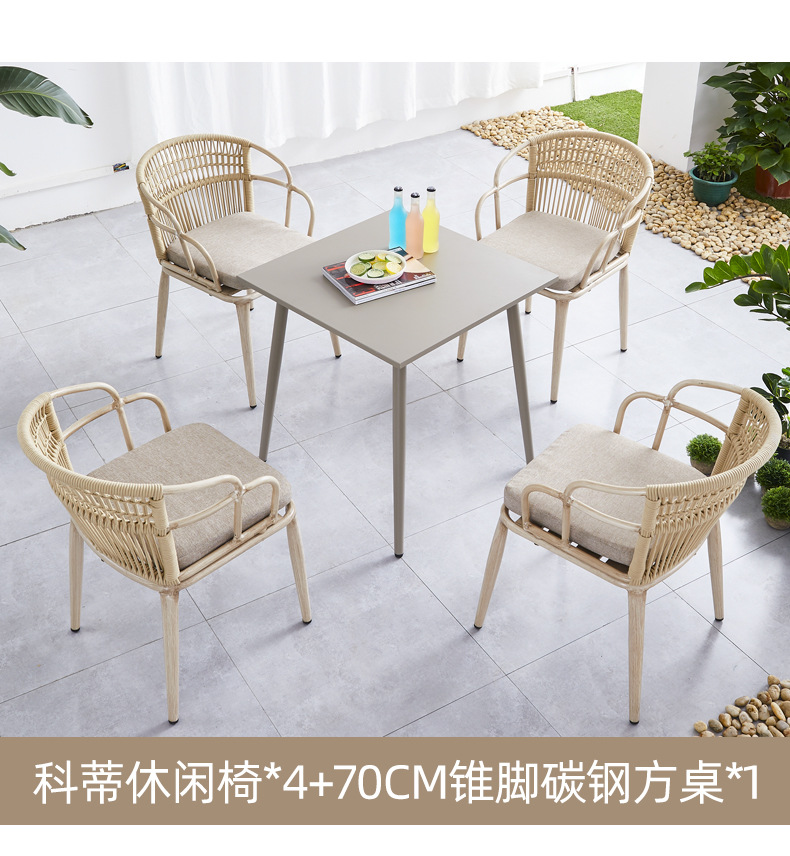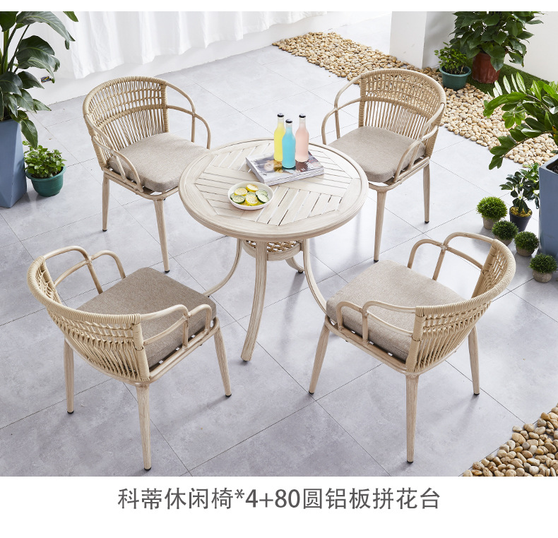 Bàn ghế kết hợp ban công, bàn cà phê sắt rèn ngoài trời, bộ ba hoặc năm món, bàn ghế sân hiên giải trí đơn giản ngoài trời