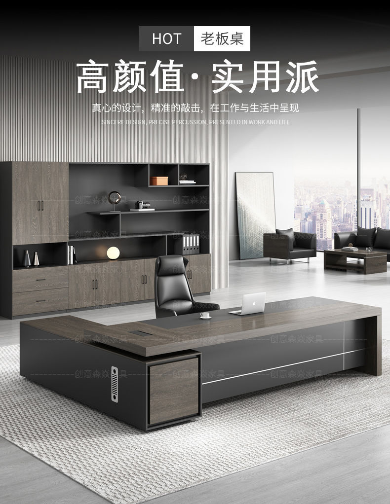 Bàn ghế kết hợp bàn giám đốc bàn giám đốc bàn giám đốc nội thất văn phòng hiện đại đơn giản tủ đôi bàn giám đốc