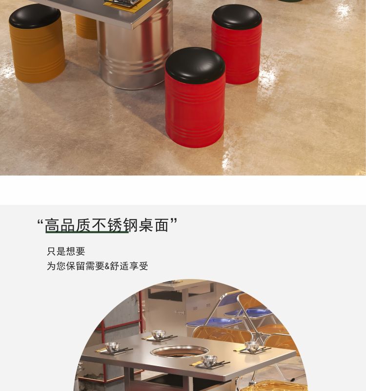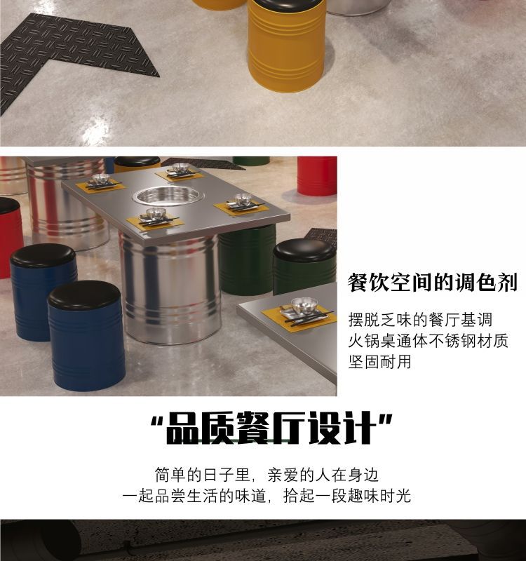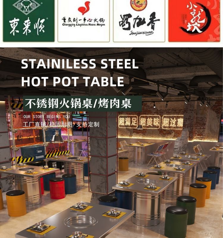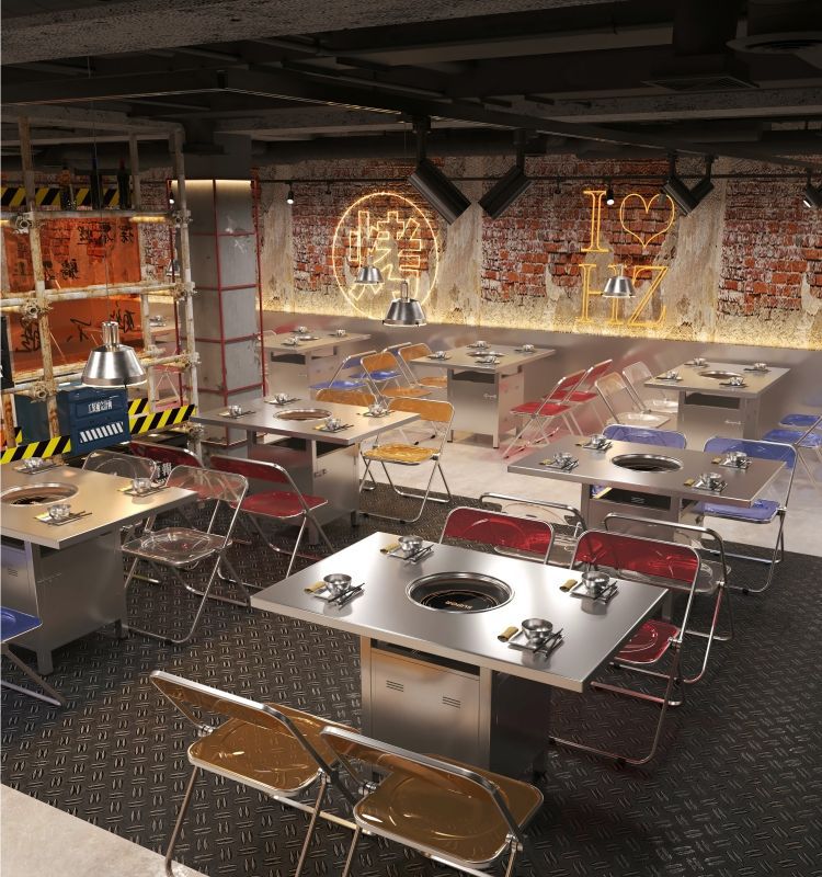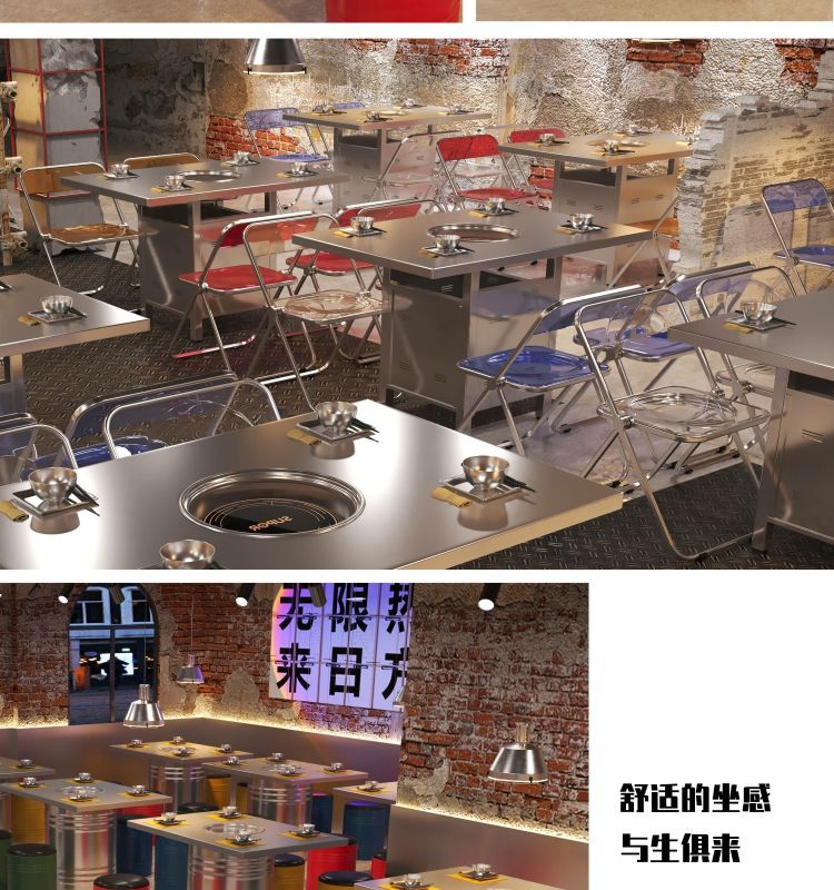 Bàn ghế Lẩu phong cách công nghiệp Bàn ghế nướng bằng thép không gỉ Lẩu không khói Bếp từ tích hợp xiên thịt nướng thương mại Bàn ghế là thiết bị nằm trong danh mục Đồ nhà hàng > Bếp nướng, được thiết kế chuyên dụng cho các nhà hàng cần sự tiện nghi và chuyên nghiệp.